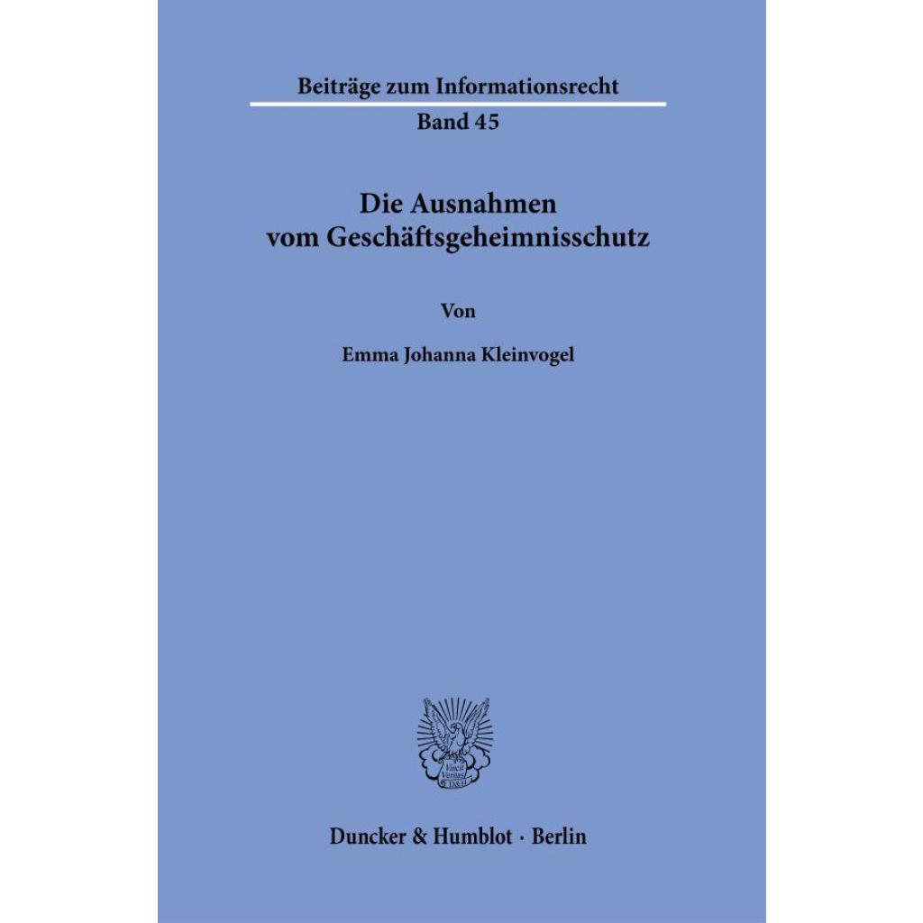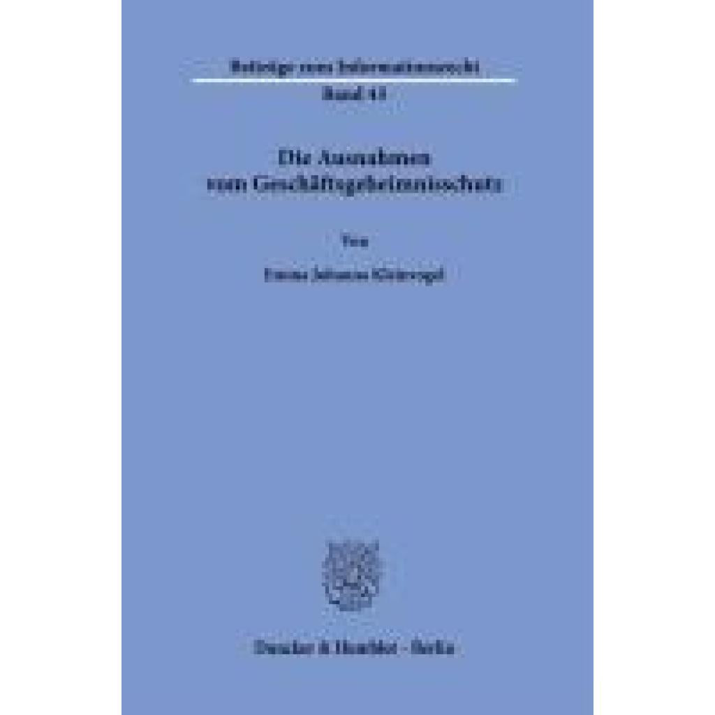 »The Exceptions to Trade Secret Protection«: Sec. 5 of the German Trade Secrets Protection Act provides exceptions to the prohibitions in Sec. 4. The exceptions require further specification. The aim of the present study is to specify these exceptions. This applies in particular to the exceptions regarding the exercising of freedom of expression and other misconduct, as well as the exception in favor of other legitimate interests. In the latter aspect, this study especially elaborates on development potential.