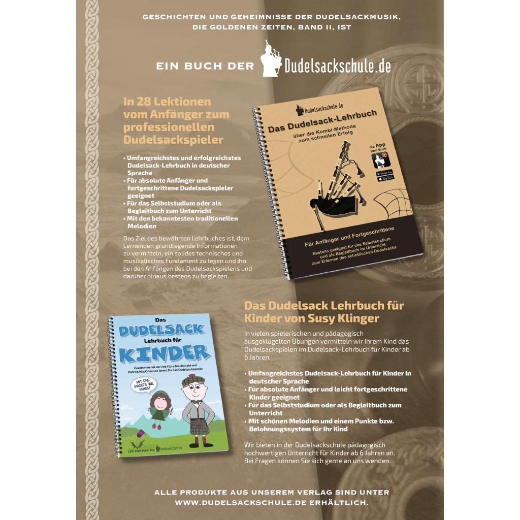 Erleben Sie eine faszinierende Reise in die Welt der Musik, eine Zeitreise zurück in die Geschichte der Dudelsackklänge. Mit unserem Buch "Geschichten und Geheimnisse der Dudelsackmusik: Die goldenen Zeiten 1950 - 1990" erleben Sie die Geschichten hinter den einzigartigen Dudelsackmelodien, die von 1950 bis 1990 komponiert wurden. Dudelsackmusik ist mehr als nur Klänge; sie ist eine lebendige Kultur, die Generationen von Menschen auf der ganzen Welt begeistert hat und bis heute fasziniert. In unserem Buch enthüllen wir die Geschichten, die mit den berühmtesten Dudelsackmelodien von 1950 bis 1990 verbunden sind. Dieses Buch ist eine Hommage an die Tradition und das Erbe der Dudelsackmusik, die sowohl Liebhaber als auch Neulinge in ihren Bann ziehen wird. Lernen Sie viele verschiedene Dudelsacklieder von den schottischen Highlands bis zu den irischen Hügeln und darüber hinaus kennen und erfahren Sie, für welche Anlässe diese Lieder komponiert und interpretiert wurden. Unsere Autorin und Lehrerin Susy Klinger ist eine renommierte Musikexpertin und Dudelsackliebhaberin, die ihr umfangreiches Wissen und ihre Leidenschaft in dieses Buch einfließen lässt. Sie recherchierte viele Jahre in Schottland und den Nachbarländern, führte viele Interviews mit alten und berühmten Dudelsackspielern und studierte die Dudelsackmusik ausgiebig, um Ihnen in diesem Lebenswerk die Geschichten und Komponisten vieler Dudelsacklieder vorzustellen. Von traditionellen Balladen bis zu lebhaften Tanzmelodien - dieses Buch ist eine Schatztruhe voller musikalischer Entdeckungen. Die reichhaltige Sammlung von Informationen zu den Dudelsackmelodien in diesem Buch wird ergänzt durch sorgfältig ausgewählte Abbildungen und Illustrationen, die die Atmosphäre und die Kultur der jeweiligen Zeitperiode lebendig werden lassen. Jede Seite ist eine Einladung, in die Geschichte einzutauchen und sich in vergangene Zeiten mitreißen zu lassen. Bestellen Sie Ihr Exemplar noch heute und lassen Sie sich von der Musikgeschichte inspirieren.