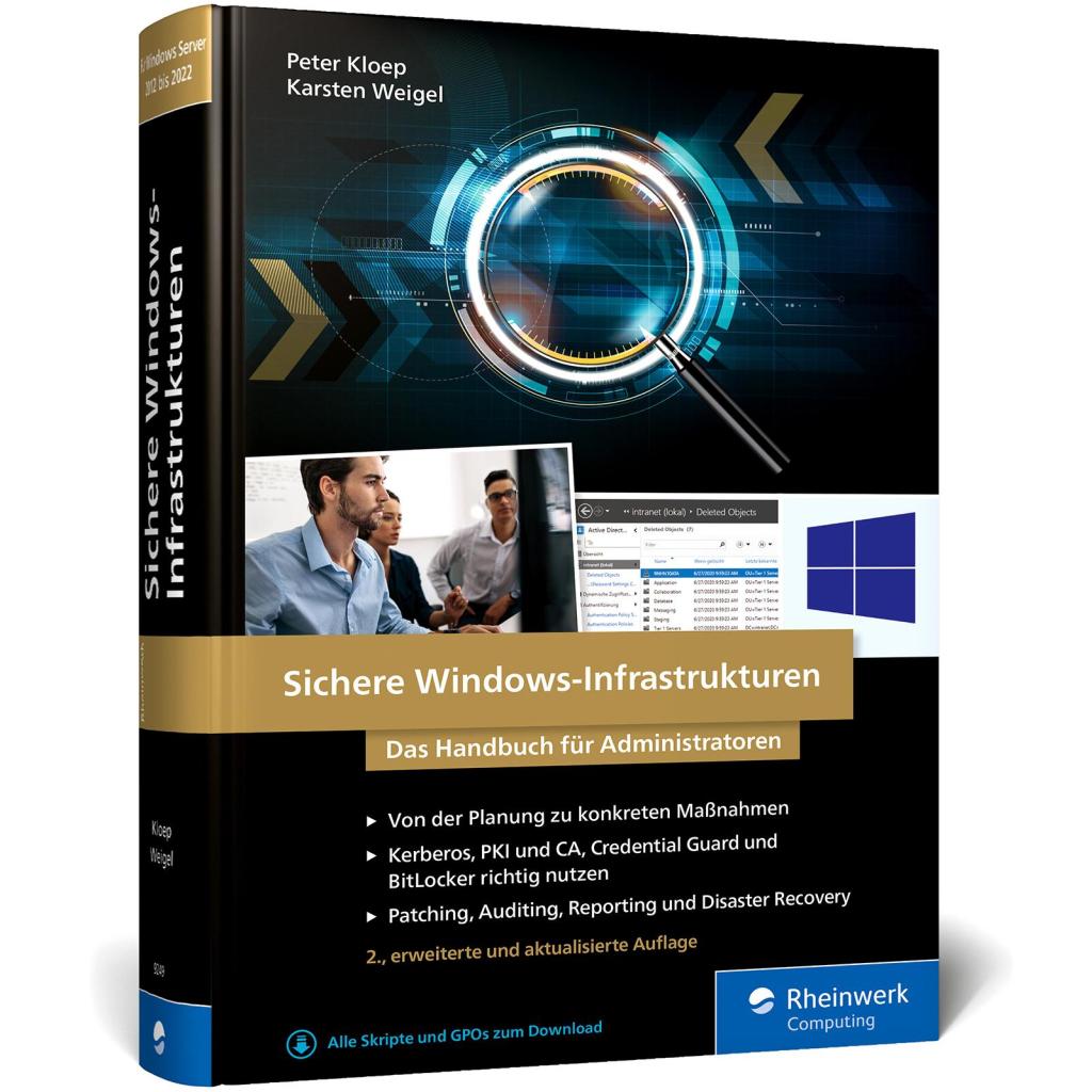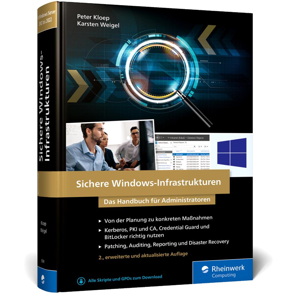 | Keyword: | Active Directory GPO; Credential-Guard; Least-Privilege; Admin-Forest; Threat-Protection; WSUS; JIT Just in time; JEA Just enough; PKI CA; LAPS; Hand-Buch Bücher Kurse Seminare Workshops Wissen Tipps Training Ausbildung Fachinformatiker; Administration; Windows-Server Netzwerke |