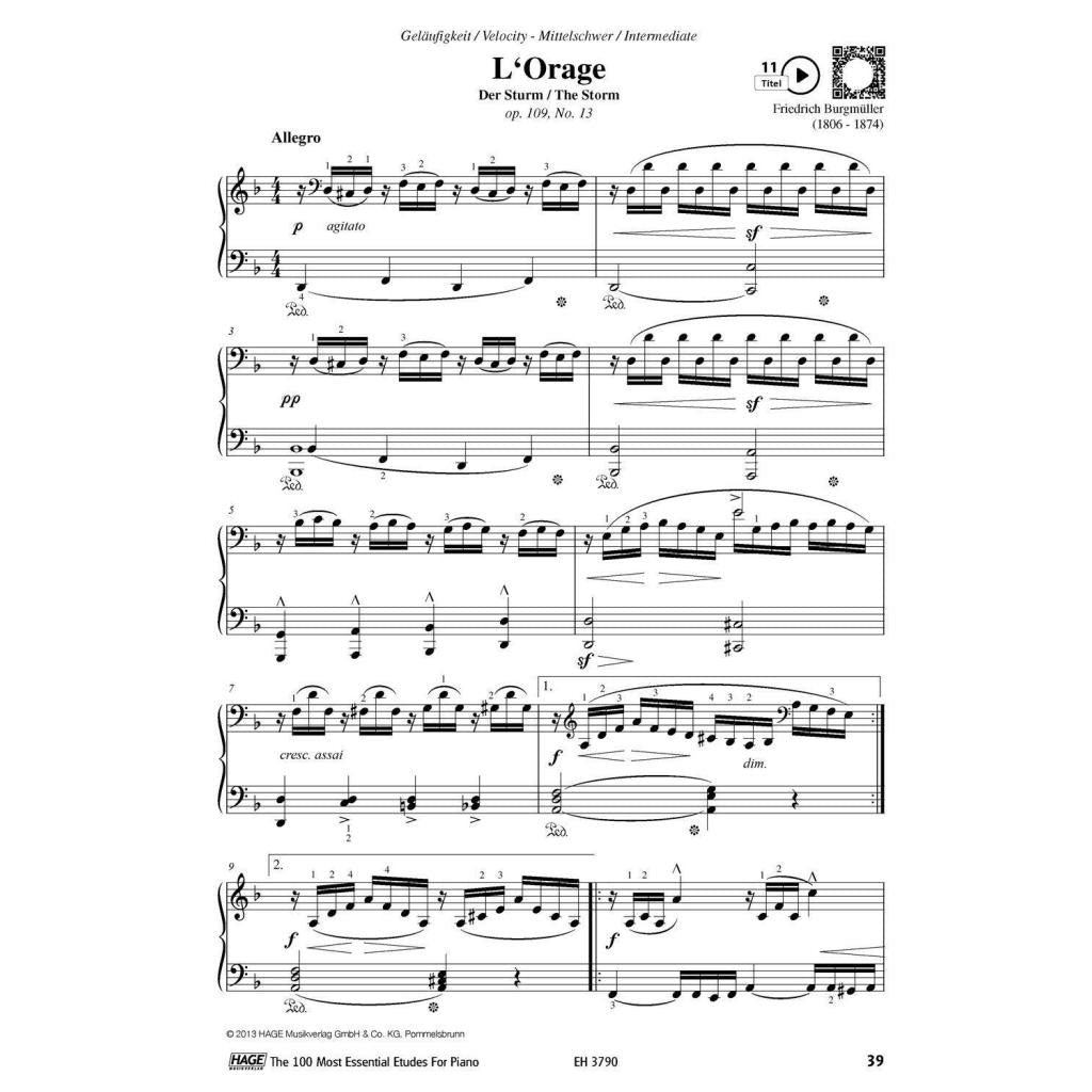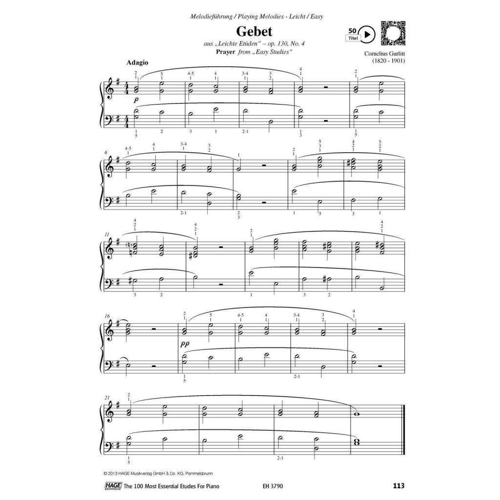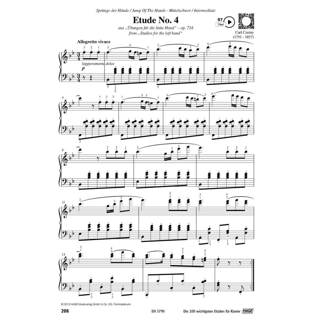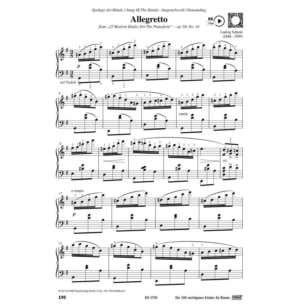 Diese einzigartige Sammlung enthält die 100 wichtigsten Etüden, die unverzichtbar für die Ausbildung eines jeden Pianisten sind. Das Buch entstand in enger Zusammenarbeit mit Klavierpädagogen und ist das Ergebnis akribischer Sichtung hunderter Etüden. Nur die didaktisch wertvollsten wurden ausgewählt. Die Etüdensammlung ist einmalig in Qualität und Fülle und erspart einem die teure Anschaffung einer Vielzahl von Einzelausgaben. Bei der Zusammenstellung der Stücke wurde darauf geachtet, dass sie sowohl spieltechnisch wertvoll als auch musikalisch ansprechend sind. So können technische und musikalische Anforderungen effektiv geübt werden, während gleichzeitig die Musikalität gefördert wird. Die Auswahl reicht von Barock über Romantik bis zu modernen Etüden zeitgenössischer Komponisten. Enthalten sind wundervolle Originalkompositionen von Beyer, Burgmüller, Czerny, Duvernoy, Gurlitt, Heller, Lemoine, Löschhorn, Schumann und vielen anderen. Das Buch ist in neun Kapitel unterteilt, die sich gezielt mit allen wichtigen Aspekten des Pianospiels befassen. Der Schwierigkeitsgrad reicht von leicht bis mittelschwer. Alle 100 Etüden wurden von Gerhard Kölbl live am Piano eingespielt und können als Hörbeispiel über den jeweiligen QR-Code einfach mit dem Smartphone oder Tablet abgespielt werden. Das Buch ist nicht nur für den Klavierunterricht und das Selbststudium geeignet, sondern auch eine wahre Schatzkiste wunderbarer Spielstücke. ---------- This unique collection contains the 100 most important etudes which are indispensable for the development of every piano player. The book evolved in close cooperation with piano teachers, and is the result of the painstaking review of hundreds of studies. Only the educationally most valuable ones were selected. The collection is unique in its quality and quantity, and avoids the expensive purchase of a wide range of individual publications. In putting the pieces together, special attention was paid to ensure that they are at the same time useful in terms of playing technique and musically appealing. In this way, technical and musical requirements can be effectively practised while musicality is fostered at the same time. The selection ranges from Baroque, via Romanticism, down to modern studies by contemporary composers. It contains wonderful original compositions by Beyer, Burgmüller, Czerny, Duvernoy, Gurlitt, Heller, Lemoine, Löschhorn, Schumann and many others. The book is divided into nine chapters, dealing systematically with all important aspects of piano playing. The degree of difficulty ranges from easy to moderately difficult. All 100 studies were played live on the piano by Gerhard Kölbl and can be easily played as an audio sample with a smartphone or tablet via the corresponding QR code. Not only is the book suitable for piano lessons and self-study, but is also a real treasure of wonderful piano pieces.