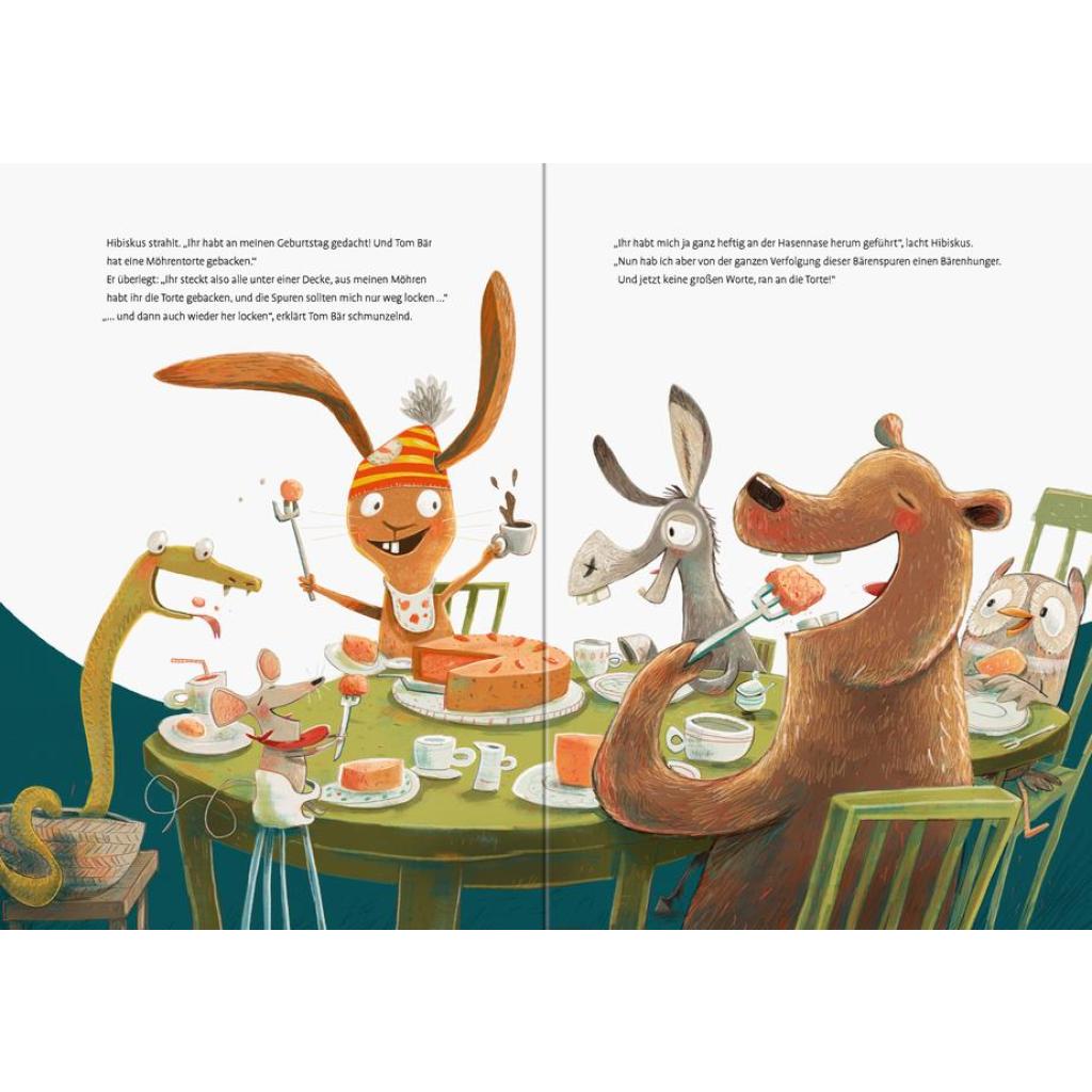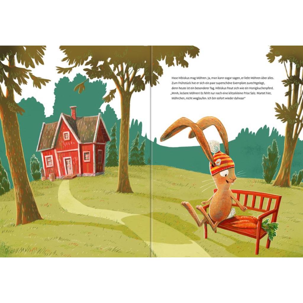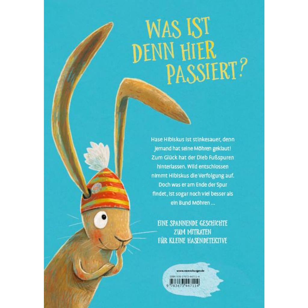 Ach, du heiliger Hasenpups! Jemand hat Hase Hibiskus die Möhren geklaut. Zum Glück hat der freche Dieb Fußspuren hinterlassen. Hase Hibiskus begibt sich sofort auf die Suche. Doch die Spuren führen ihn zu seinem eigenen Haus zurück. Und drinnen ist alles verwüstet. Ob der Dieb sich dort versteckt? Zum Glück gibt es eine ganz einfache Erklärung dafür und eine möhrenstarke Überraschung für Hibiskus.