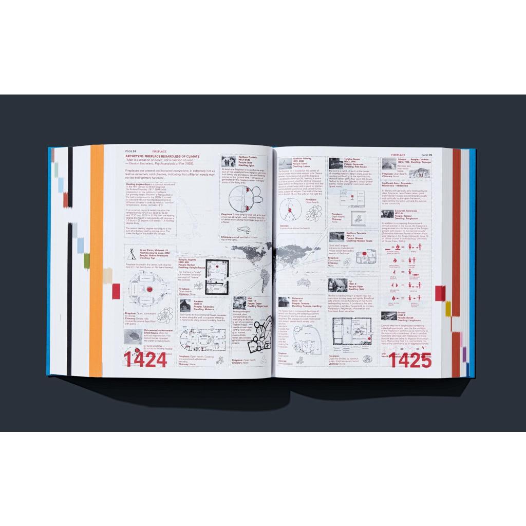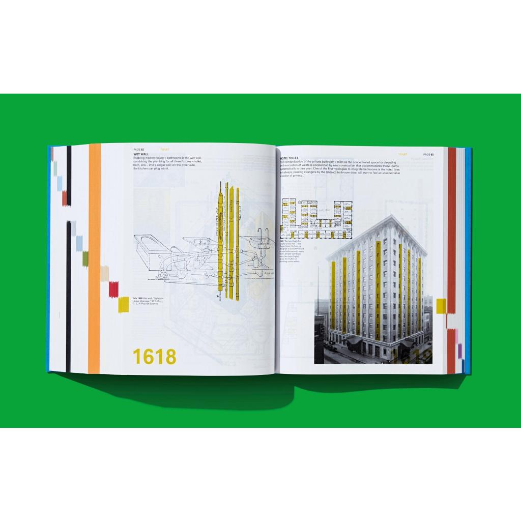 Architektur ist eine fesselnde Mischung aus Kontinuität und Wandel . In ihren festen Formen prallen Raum und Zeit aufeinander und verschmelzen dabei weit voneinander entfernte Einflüsse - Elemente, die es seit über 5.000 Jahren gibt, und andere, die erst gestern (wieder-)erfunden wurden . Elements of Architecture widmet sich den einzelnen Komponenten der vielseitigen und komplexen architektonischen Collage. Fenster, Fassade, Balkon, Korridor, Kamin, Stufe, Rolltreppe, Fahrstuhl: Das Buch begibt sich auf die Suche nach der grundlegenden Geschichte hinter den baulichen Details . Das Ergebnis ist keine zusammenhängende Erzählung, sondern ein architekturhistorisches Geflecht aus Ursprüngen, Übernahmen, Ähnlichkeiten und Unterschieden einschließlich der Einflüsse technischer Fortschritte, politischer Gegebenheiten, wirtschaftlicher Zusammenhänge, gesetzlicher Anforderungen und neuer digitaler Möglichkeiten . Das Buch beruht auf Koolhaas' viel gelobter Ausstellung während der Architektur-Biennale 2014 in Venedig und ist eine tief greifende Grundlagenforschung , die selbst Visionär und Chefdenker Rem Koolhaas einige Aha-Erlebnisse bescherte: "Ich war schockiert, wie wenig ich etwa auch über die Geschichte der Tür wusste, obwohl ich ein relativ kultivierter und an der Geschichte interessierter Architekt bin. Wir haben die Komplexität der Gegenwart und die der Vergangenheit entdeckt." Der von Irma Boom gestaltete, 2.600 Seiten starke Band, der auf Forschungsarbeiten der Harvard Graduate School of Design basiert, enthält Essays von Rem Koolhaas , Stephan Trüby , James Westcott und Stephan Petermann , Interviews mit Werner Sobek und Tony Fadell (von Nest Labs) und einen exklusiven Fotoessay von Wolfgang Tillmans . Neben umfassend aktualisierten Texten und neuen Bildern besticht diese Monografie durch ihr neues Design, mit dem sie visuell (und physisch) der ungeheuren Bandbreite ihres Themas gerecht wird: maßgefertigter Einband mit zweigeteiltem Buchrücken : Unser Drucker hat seine Buchbindemaschine umgebaut, um den flexiblen, acht Zentimeter dicken Rücken zu ermöglichen mit einem neuen Einleitungskapitel mit Vorworten, Inhaltsverzeichnis und einem Index in der Buchmitte (wo sich das Buch dank seiner Buchrückenkonstruktion automatisch aufschlägt) gedruckt auf 50g/m2-Opakalpapier, mit der idealen Lichtdurchlässigkeit für Irma Booms palimpsestähnliches Design Durchscheinende Overlays und persönliche Anmerkungen von Koolhaas und Boom sind in jedes Kapitel eingewebt und ermöglichen einen alternativen, schnelleren Weg durch das Buch gedruckt in der ursprünglich vorgesehenen Größe für bessere Lesbarkeit