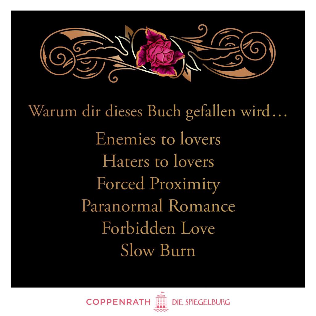 | Keyword: | Enemies to lovers; Fobidden Love; Forced Proximity; Haters to lovers; Jugendbuch Fantasy; Paranormal Romance; Romance; Romantasy; Slow Burn; Wednesday Addams |