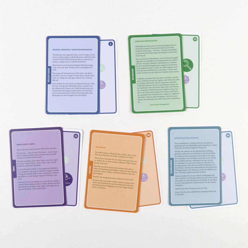 | Keyword: | Abhängigkeit; Abstinenz; Alkohol; Alkoholabhängigkeit; Alkoholismus; Alkoholmissbrauch; Alkoholproblem; Alkoholtherapie; Beratung; Kartenset; Psychotherapie; Substanzabhängigkeit; Sucht; Suchtbehandlung; Suchttherapie; Therapiekarten; Therapiematerial |