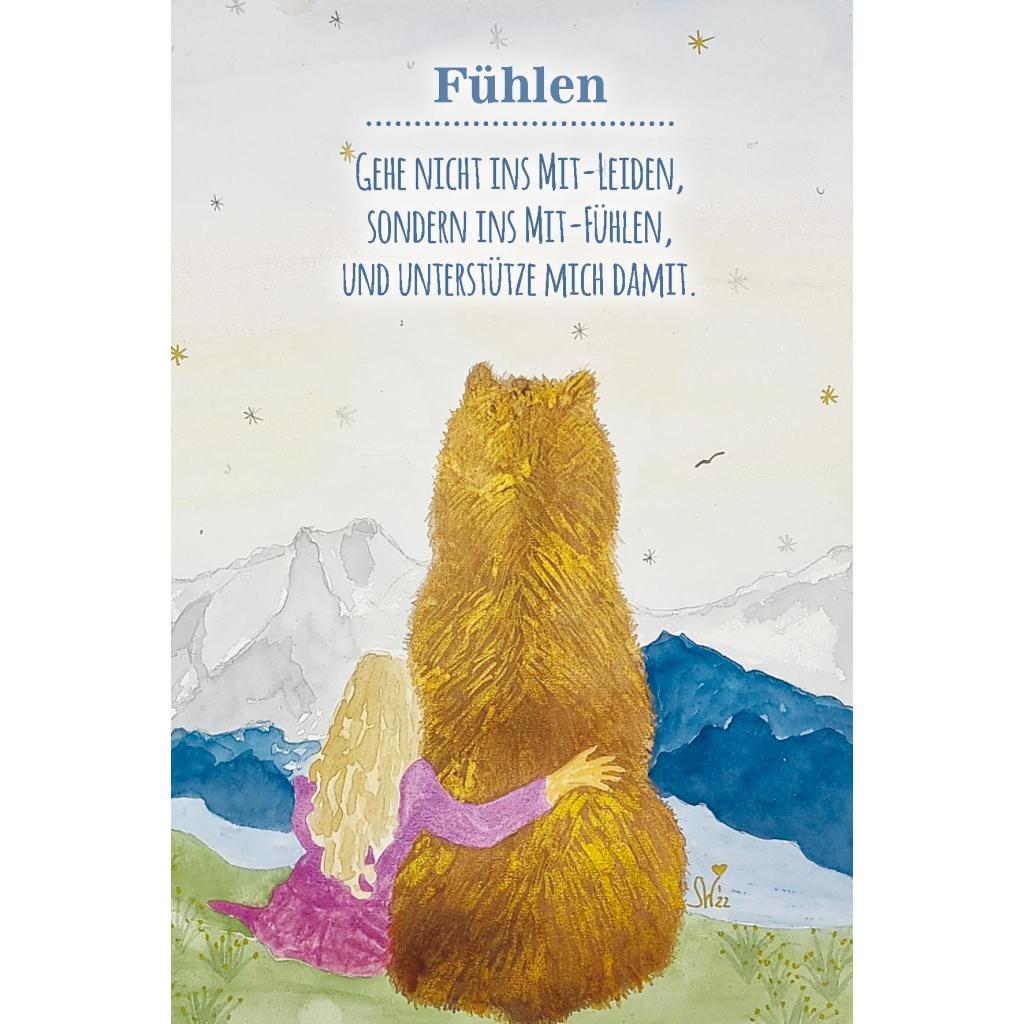 Wir lieben Tiere - unsere Haustiere und auch die, die regelmäßig in unseren Garten kommen oder die wir immer wieder im Tierpark besuchen. Wenn wir doch nur wüssten, was sie bewegt! Die Tierkommunikatorin Christiane Krieg versteht die Botschaften von Samtpfote, Spürnase & Co. In »Mit Tieren kommunizieren « zeigte sie, wie Menschen, die das Leben mit einem vierbeinigen Freund teilen, in telepathischen Kontakt mit ihm treten können. Für alle, die sich noch mehr praktische Unterstützung wünschen, vereint sie in diesem liebevoll illustrierten Kartenset die wichtigsten Botschaften aus der Tierwelt. Intuitiv gezogen, sensibilisieren uns die Karten für das, was Hund und Katze, Fuchs und Amsel auf dem Herzen haben. Endlich begegnen wir ihnen von Seele zu Seele, und das Miteinander wird noch verständnisvoller und inniger.