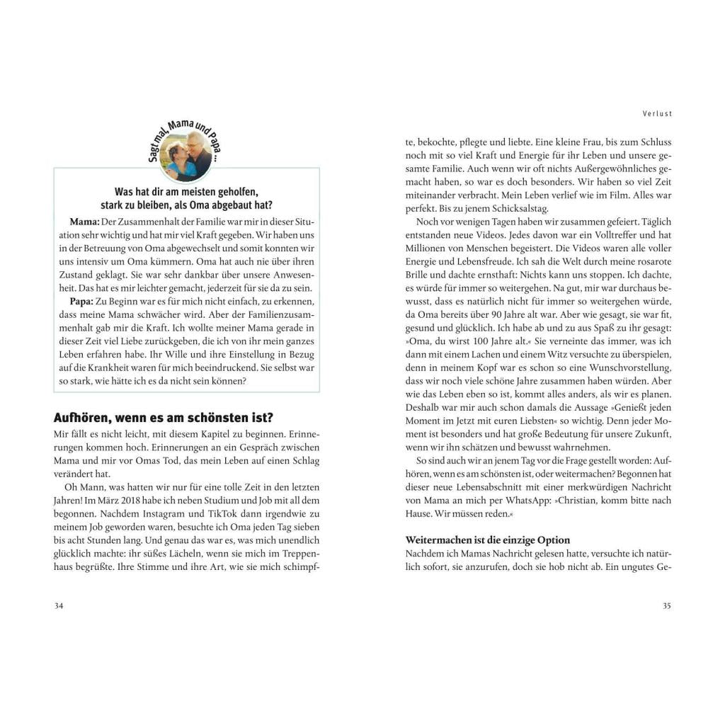 | Keyword: | BookTok;TikTok; Oma Lisbeth;mir doch woschd;Oma und Enkel;trauerbewältigung;trauerhilfe; Selbsthilfe;Selbstfürsorge;Loslassen;Trost finden; persönlicher verlust;Emotionaler Verlust;Umgang mit dem Tod;Lebensfreude wiederfinden;zurück ins leben |