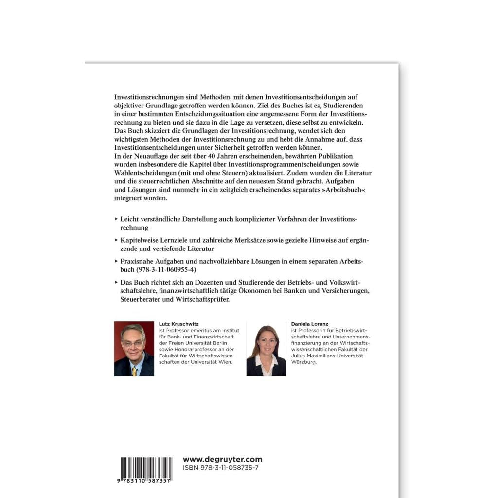 Investitionsrechnungen sind Methoden, mit denen Investitionsentscheidungen auf objektiver Grundlage getroffen werden können. Ziel des Buches ist es, Studierenden in einer bestimmten Entscheidungssituation eine angemessene Form der Investitionsrechnung zu bieten und sie dazu in die Lage zu versetzen, diese selbst zu entwickeln. Das Buch skizziert die Grundlagen der Investitionsrechnung, wendet sich den wichtigsten Methoden der Investitionsrechnung zu und hebt die Annahme auf, dass Investitionsentscheidungen unter Sicherheit getroffen werden können. In der Neuauflage der seit über 40 Jahren erscheinenden, bewährten Publikation wurden insbesondere die Kapitel über Investitionsprogrammentscheidungen sowie Wahlentscheidungen (mit und ohne Steuern) aktualisiert. Zudem wurden die Literatur und die steuerrechtlichen Abschnitte auf den neuesten Stand gebracht. Aufgaben und Lösungen sind nunmehr in ein zeitgleich erscheinendes separates "Arbeitsbuch" (978-3-11-060955-4) integriert worden.