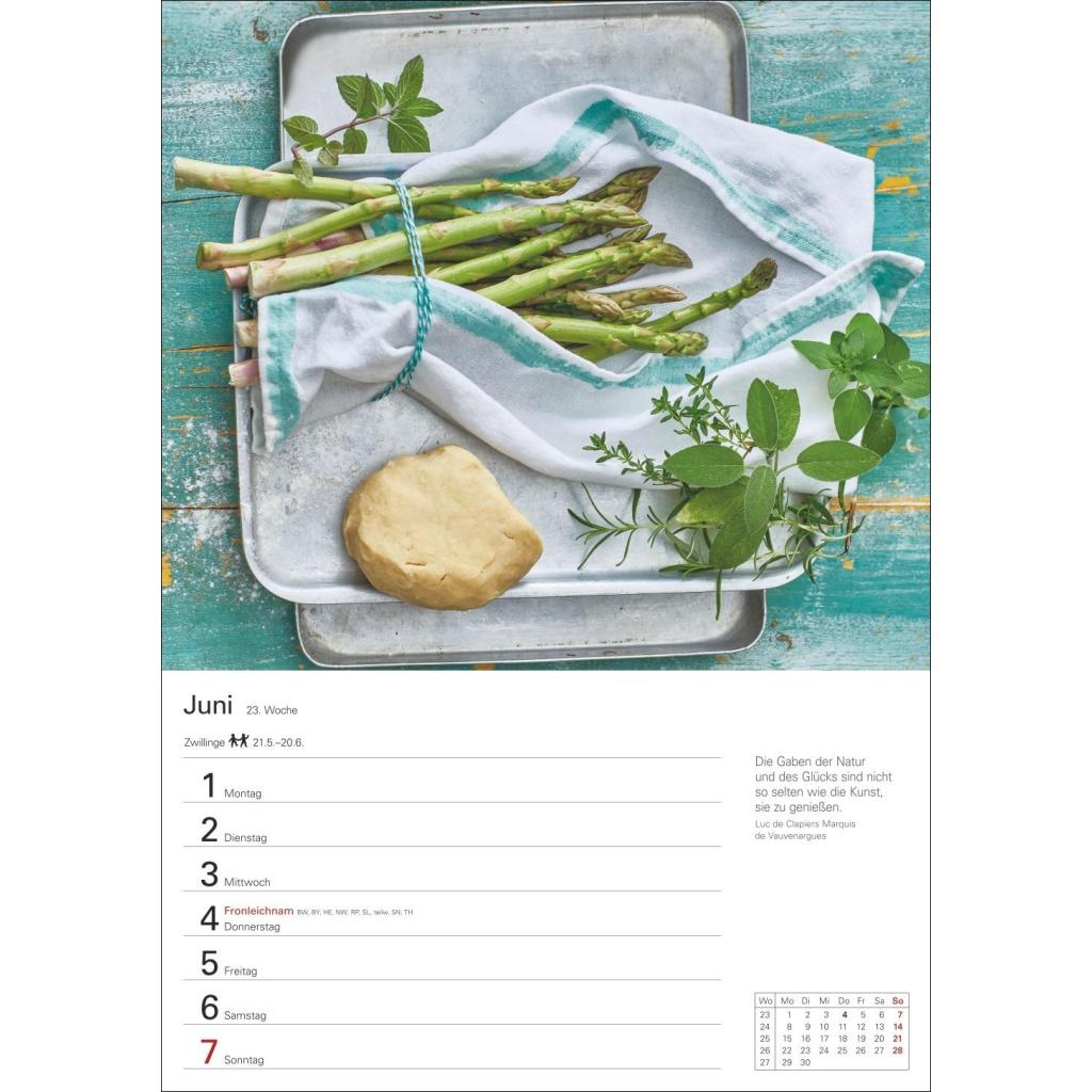 Hochwertiger Wandkalender mit 53 ästhetischen Food-Fotos. Praktischer Termin-Kalender für die Küche. 25 x 35,5 cm. Hochformat