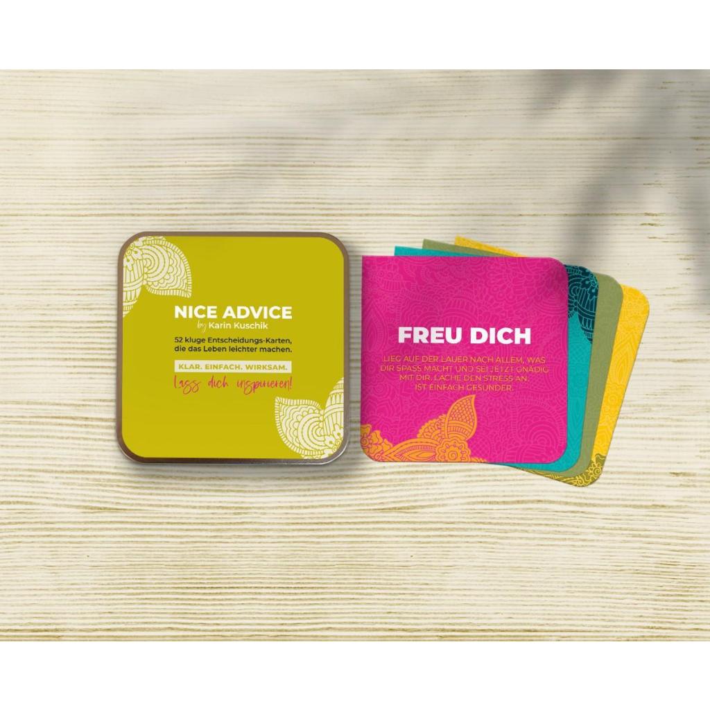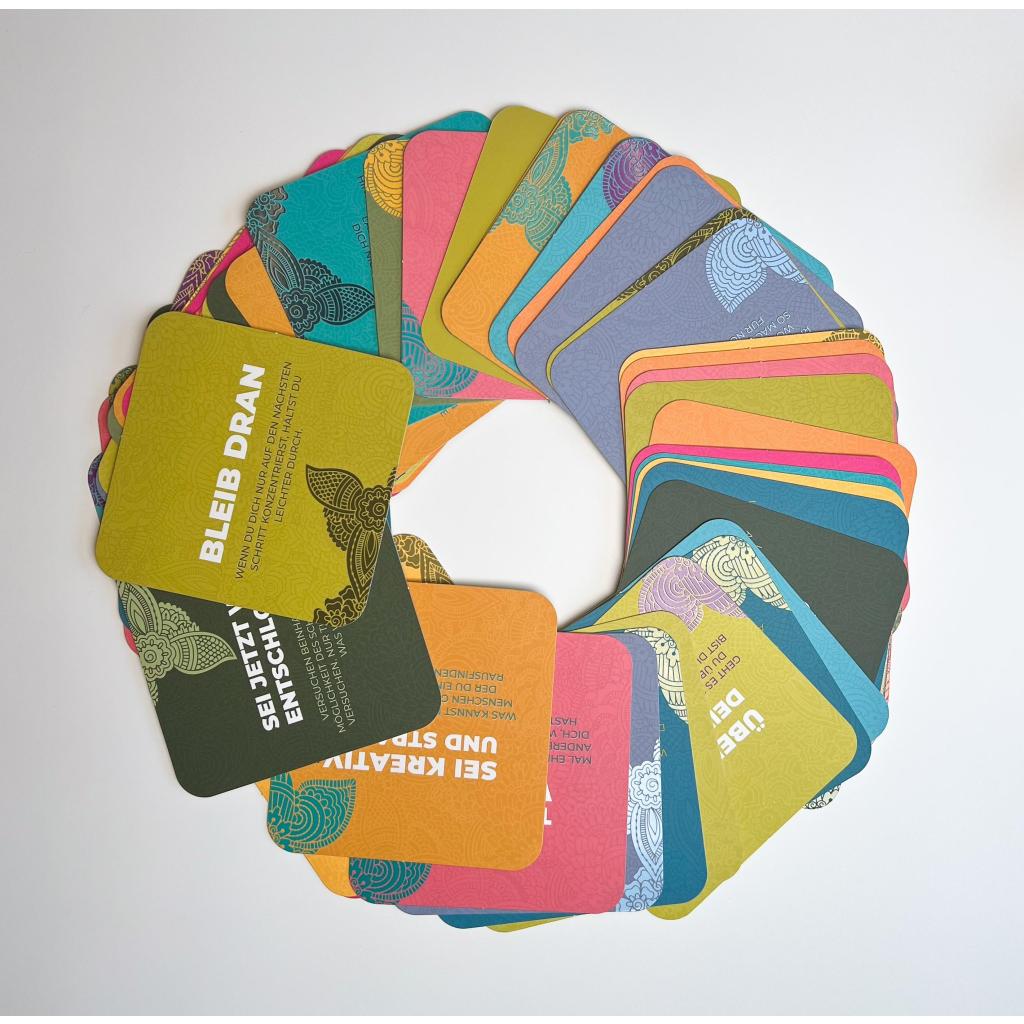 Du fragst, die Karten antworten. Ein vertiefender Satz gibt zusätzlich Anregung zur Selbstreflexion.