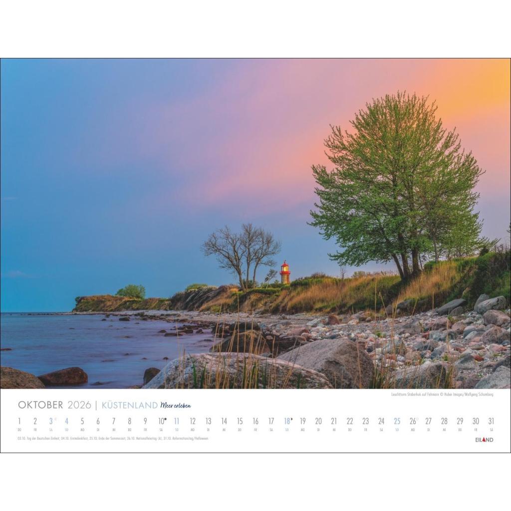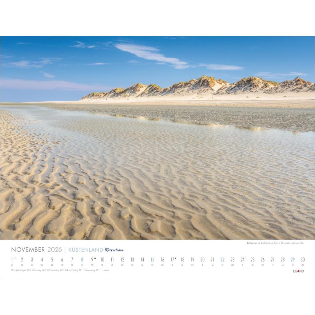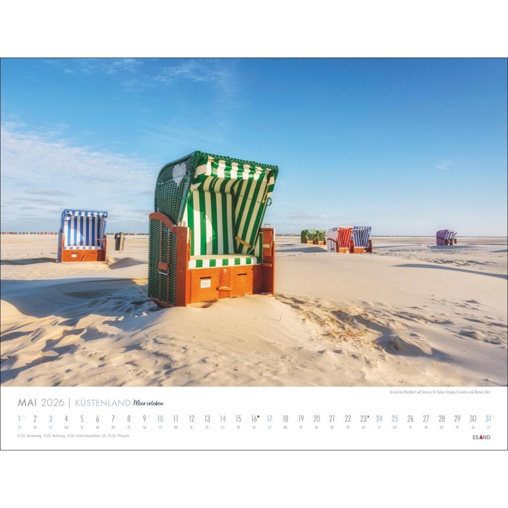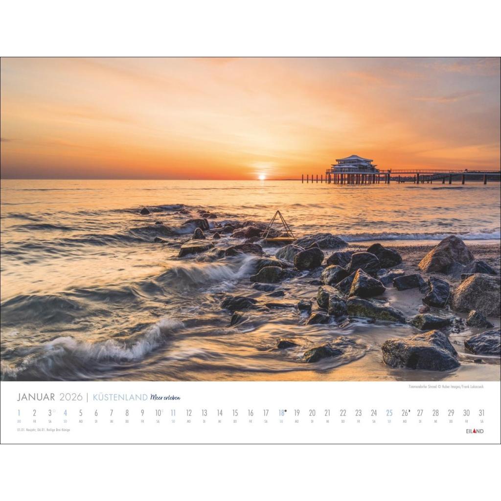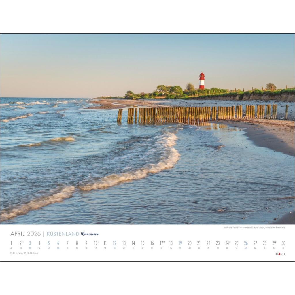 Großer Foto-Wandkalender. Landschaften-Kalender 2026 mit atemberaubenden Fotos der Ostsee- und Nordseeküste. 44 x 34 cm Querformat.