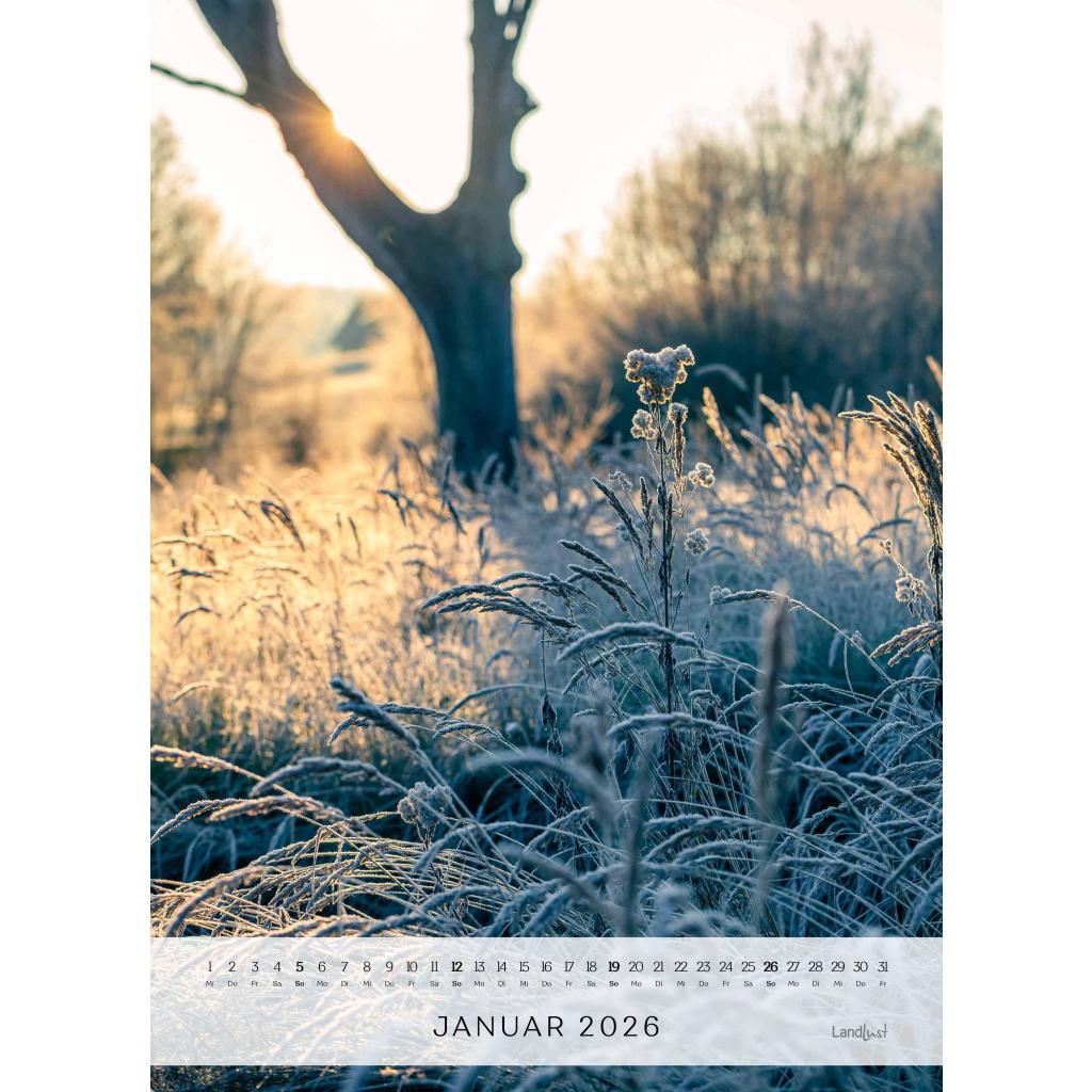 Landlust Jahreskalender 2026 im Format 45 x 62 cm – Natur und Gartenkunst aus der Welt der Landlust Der Landlust Jahreskalender 2026 bringt die inspirierende Bildwelt der beliebten Zeitschrift Landlust in Ihr Zuhause. Als eine der reichweitenstärksten Zeitschriften Deutschlands steht Landlust für die Liebe zur Natur, Gartenkunst und ländlicher Lebensart. Dieser Kalender im 45 x 62 cm im Posterformat zeigt eindrucksvolle Fotografien von Gärten, Landschaften und Naturmomenten, die speziell auf die Interessen der Landlust-Leserschaft abgestimmt sind. Jeden Monat begleitet Sie eine neue stimmungsvolle Aufnahme, die das Lebensgefühl von Landlust einfängt – perfekt für alle, die Natürlichkeit und Ästhetik schätzen. Highlights: - Exklusive Garten- und Naturfotografie inspiriert von der Landlust-Redaktion - Posterformat 45 x 62 cm – ein dekorativer Blickfang für Wohnräume und Büro - Perfektes Geschenk für Gartenfreunde und Leser der Landlust - Harmoniert mit dem Lebensstil und den Werten der Landlust-Leserschaft Mit dem Landlust Jahreskalender 2026 holen Sie sich Monat für Monat ein Stück der beliebtesten Zeitschrift für Natur- und Gartenliebhaber an die Wand.