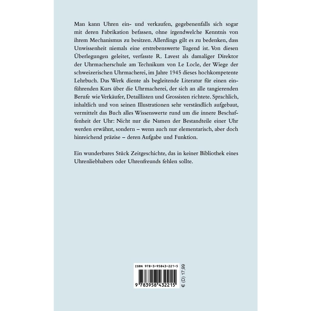 Unverzichtbares Handbuch für Uhrenbastler, Uhrensammler und Uhrenliebhaber Eine Fundgrube des Wissens für die Reparatur alter Uhren Das Standardwerk für die Uhrenmacherlehre Man kann Uhren ein- und verkaufen, gegebenenfalls sich sogar mit deren Fabrikation befassen, ohne irgendwelche Kenntnis von ihrem Mechanismus zu besitzen. Allerdings gilt es zu bedenken, dass Unwissenheit niemals eine erstrebenswerte Tugend ist. Von diesen Überlegungen geleitet, verfasste R. Lavest als damaliger Direktor der Uhrmacherschule am Technikum von Le Locle, der wiege der schweizerischen Uhrmacherei, im Jahre 1945 dieses hochkompetente Lehrbuch. Das Werk diente als begleitende Literatur für einen einführenden Kurs über die Uhrmacherei, der sich an alle tangierenden Berufe wie Verkäufer, Detaillisten und Grossisten richtete. Sprachlich, inhaltlich und von seinen Illustrationen sehr verständlich aufgebaut, vermittelt das Buch alles Wissenswerte rund um die innere Beschaffenheit der Uhr: Nicht nur die Namen der Bestandteile einer Uhr werden erwähnt, sondern - wenn auch nur elementarisch, aber doch hinreichend präzise - deren Aufgabe und Funktion. Ein wunderbares Stück Zeitgeschichte, das in keiner Bibliothek eines Uhrenliebhabers oder Uhrenfreunds fehlen sollte. Der Titel ist in der Reihe der Uhrmacher-Reprints aus dem HEEL Verlag erschienen, die sich unter Uhrmachern und Bastlern großer Beliebtheit erfreuen: Die Uhr und Ihre Funktionen Der Uhrmacher am Werktisch Porträt einer Taschenuhr Leitfaden für die Uhrmacherlehre Die Großuhr Grundriss vom Aufbau einer Uhr