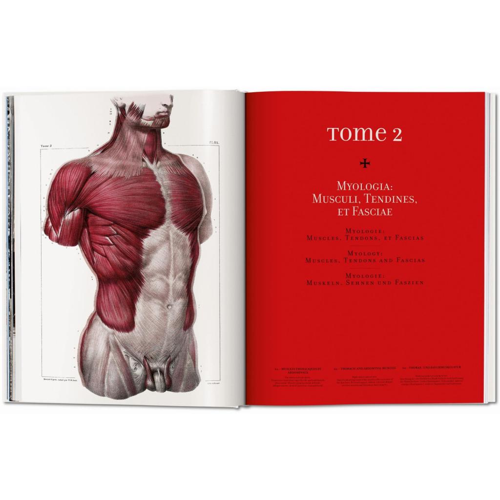 In Jean Baptiste Marc Bourgerys (1797¿1849) Atlas d'anatomie humaine erreichte die anatomische Ikonografie einen zuvor unbekannten Grad an wissenschaftlicher Exaktheit und künstlerischer Perfektion. Sein Werk ist bis heute eine der umfassendsten und am schönsten illustrierten Abhandlungen über Anatomie, die je veröffentlicht wurden . Bourgery, angesehener Chirurg und Anatom in Paris, zu seiner Enttäuschung jedoch zeitlebens ohne ein wissenschaftliches Lehramt, begann die Arbeit an dem aufwendigen, prachtvollen Atlas im Jahr 1830 in Zusammenarbeit mit dem Illustrator Nicolas Henri Jacob (1782¿1871), einem Schüler von Jacques Louis David. Die ersten Bände erschienen bereits im darauffolgenden Jahr, doch die endgültige Fertigstellung des Werks gelang erst nach zwei arbeitsintensiven Jahrzehnten. Die Herausgabe des letzten Teils seines achtbändigen Monumentalwerkes und eines Ergänzungsbandes erlebte Bourgery aufgrund seines frühen Todes (Cholera) nicht mehr mit. Die acht Bände von Bourgerys Werk decken die Bereiche beschreibende Anatomie, chirurgische Anatomie und Techniken (mit detaillierter Schilderung aller gängigen Operationen, die in der ersten Hälfte des 19. Jahrhunderts durchgeführt wurden), allgemeine Anatomie und Embryologie sowie mikroskopische Anatomie ab. Jacobs spektakuläre, handkolorierte Lithografien bestechen durch ihre Klarheit, Farbgebung und Brillanz. In ihnen spiegelt sich eine Kombination aus unmittelbaren Beobachtungen im Labor und Recherche auf dem Gebiet der medizinischen Illustration wider. Die einzigartigen Bilder bieten wissenschaftlich absolut exakte und künstlerisch perfekte Einblicke in die menschliche Anatomie und dürften nicht nur Leser aus medizinischen Berufen faszinieren, sondern auch Künstler, Studenten und all diejenigen, die sich für die Beschaffenheit unseres Körpers interessieren.