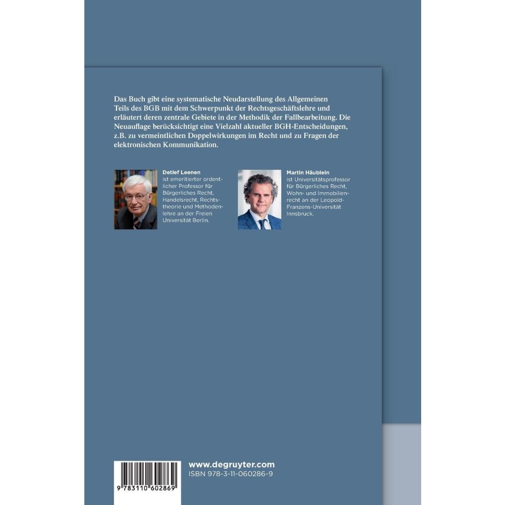 Das Buch gibt eine systematische Neudarstellung des Allgemeinen Teils des BGB mit dem Schwerpunkt der Rechtsgeschäftslehre und erläutert deren zentrale Gebiete in der Methodik der Fallbearbeitung. Die Neuauflage berücksichtigt eine Vielzahl aktueller BGH-Entscheidungen, z.B. zu vermeintlichen Doppelwirkungen im Recht und zu Fragen der elektronischen Kommunikation.