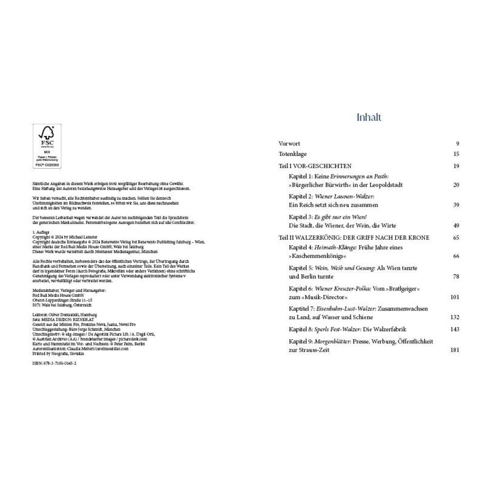 | Keyword: | Aufbruchstimmung; Die Fledermaus; Eduard Strauss; Frauen; Johann Strauss; Jubiläum; Kulturgeschichte; Lemster; Metternich; Musikerdynastie; Operette; Preußen; Radetzky-Marsch; Sohn; Unterhaltung; Vater; Walzer; Walzerkönig; Wien; Wiener Klassik; Wiener Kongress |