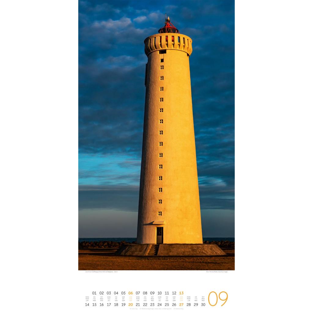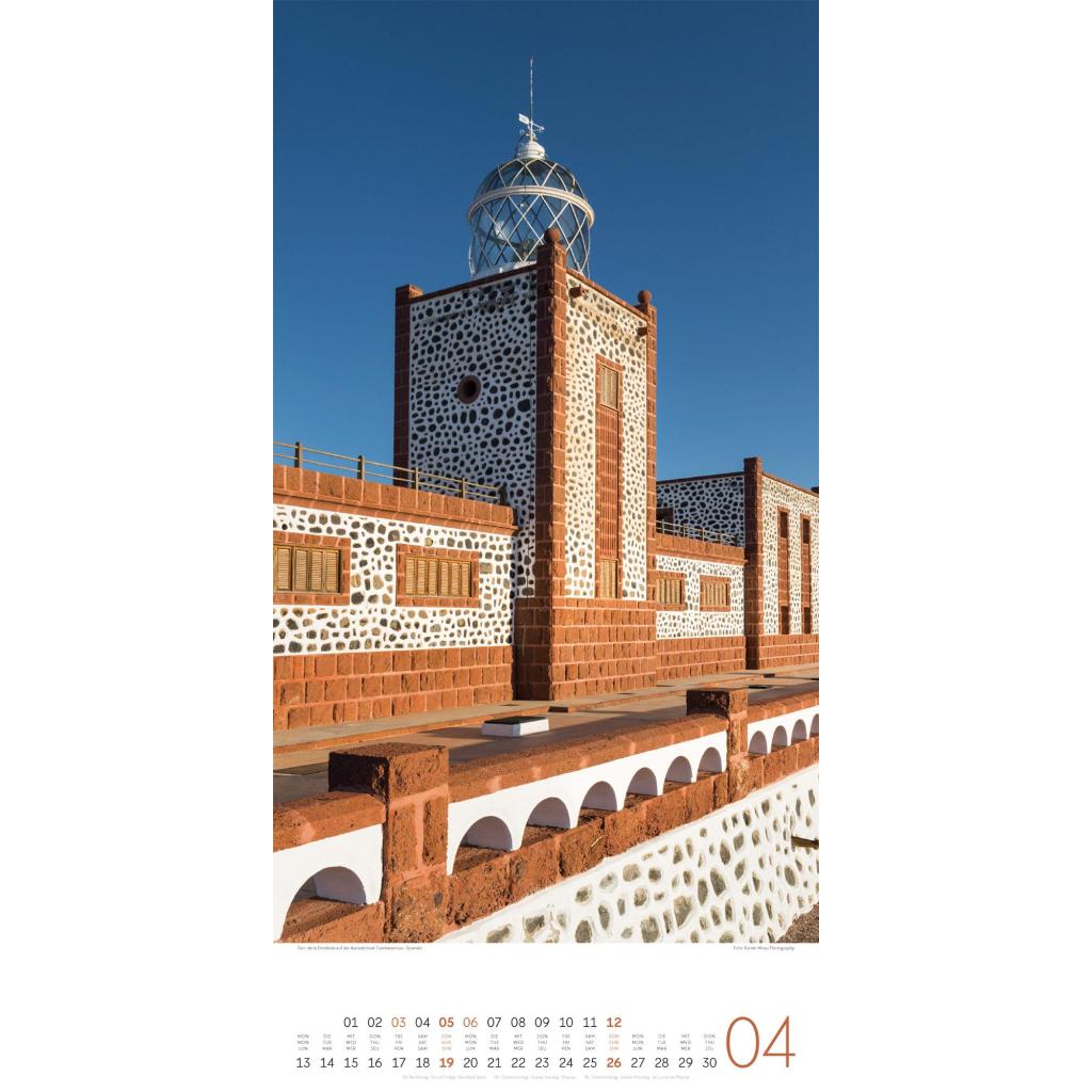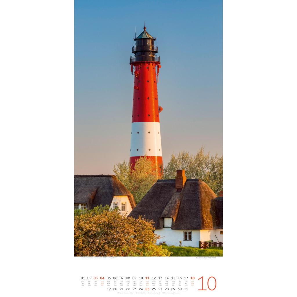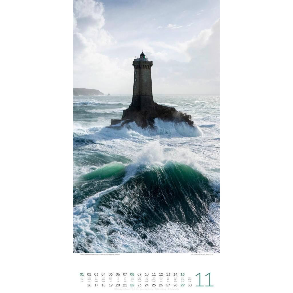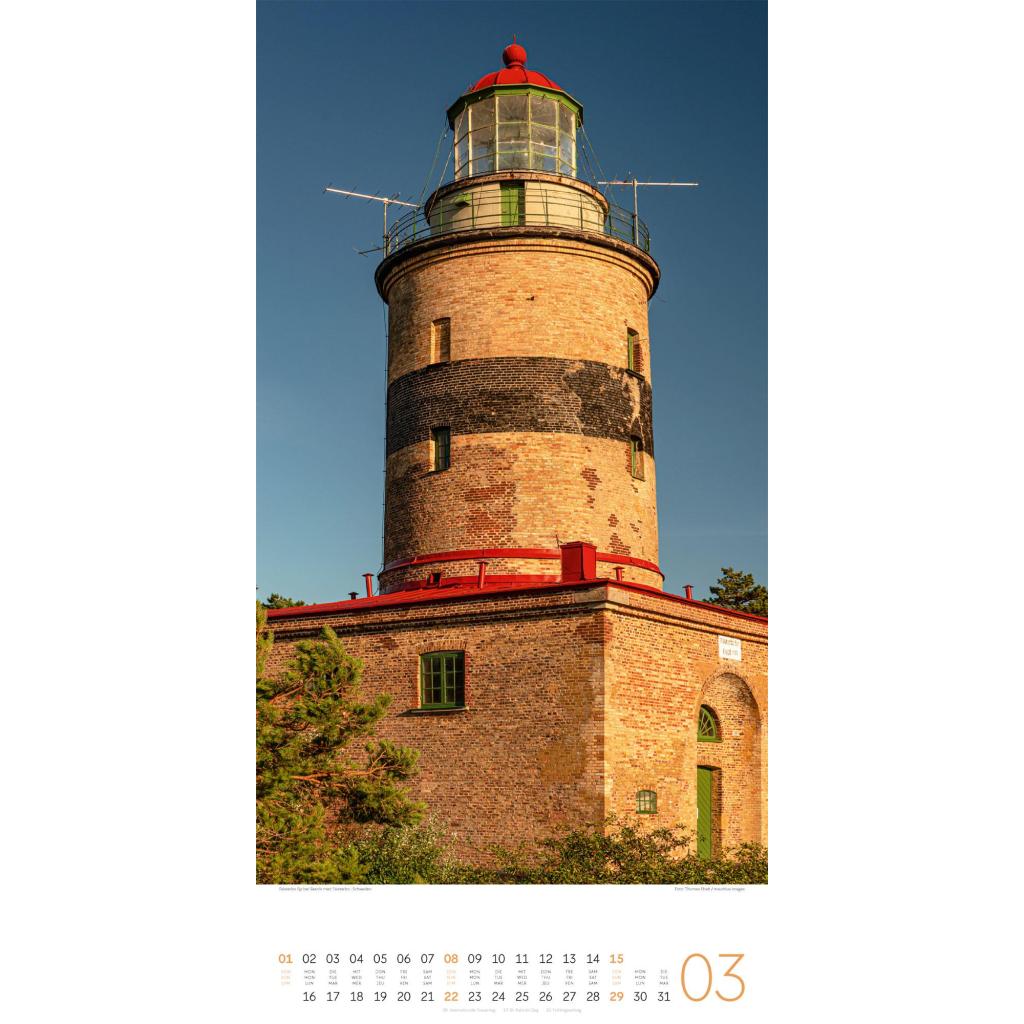 Maritimer Architektur-Kalender im schlanken Hochformat (33x66 cm) | Leuchtfeuer an Meer und Küste