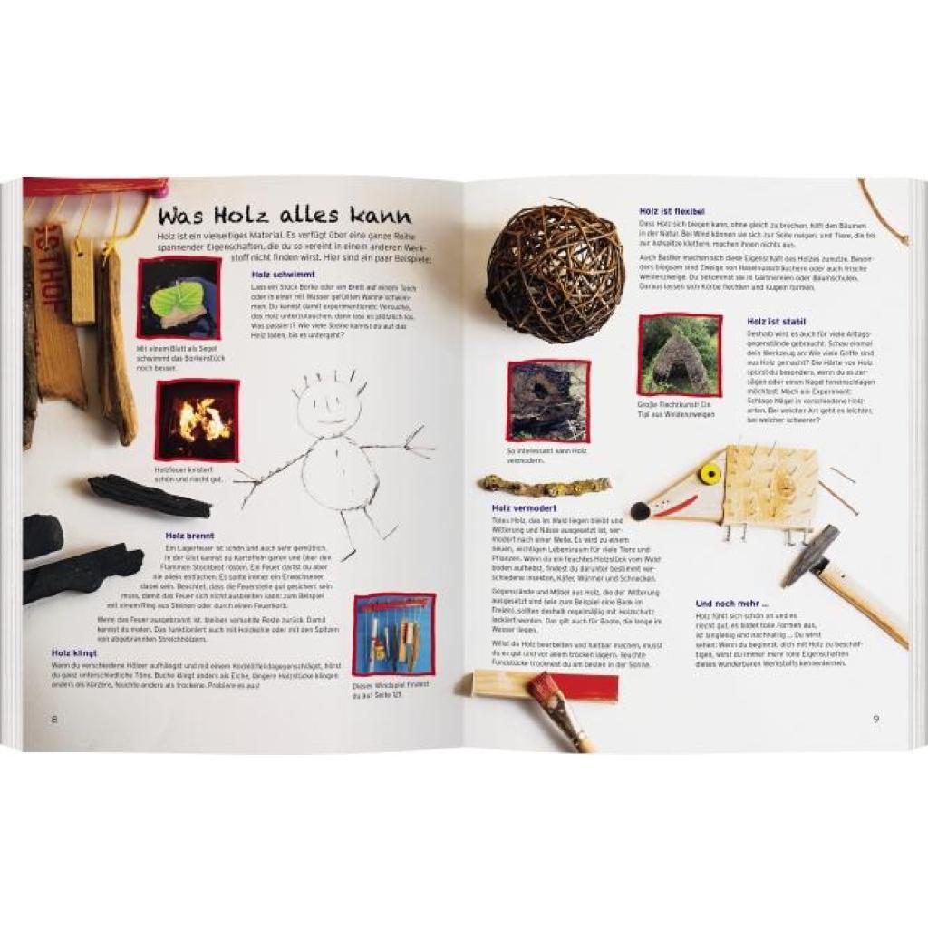 Willkommen in Sabine Lohfs großer Holzwerkstatt! Über 150 kreative Ideen sind in diesem Buch versammelt: Borkenkrokodile, Leisten-Labyrinthe, Kochlöffel-Theater, Eisstiel-Sterne, Obstkisten-Züge und vieles mehr. Hier wird gesägt, gehämmert und gebohrt, aber auch gemalt, geklebt und ganz viel gespielt. Woher bekomme ich Holz für mein Bastelprojekt? Welche Werkzeuge sind am besten geeignet? Welche Eigenschaften haben die verschiedenen Hölzer? Sabine Lohf weiß alle diese Fragen kenntnisreich und mit großer Begeisterung für dieses wunderbare Naturmaterial zu beantworten. Ein Buch für alle, die Holz lieben!