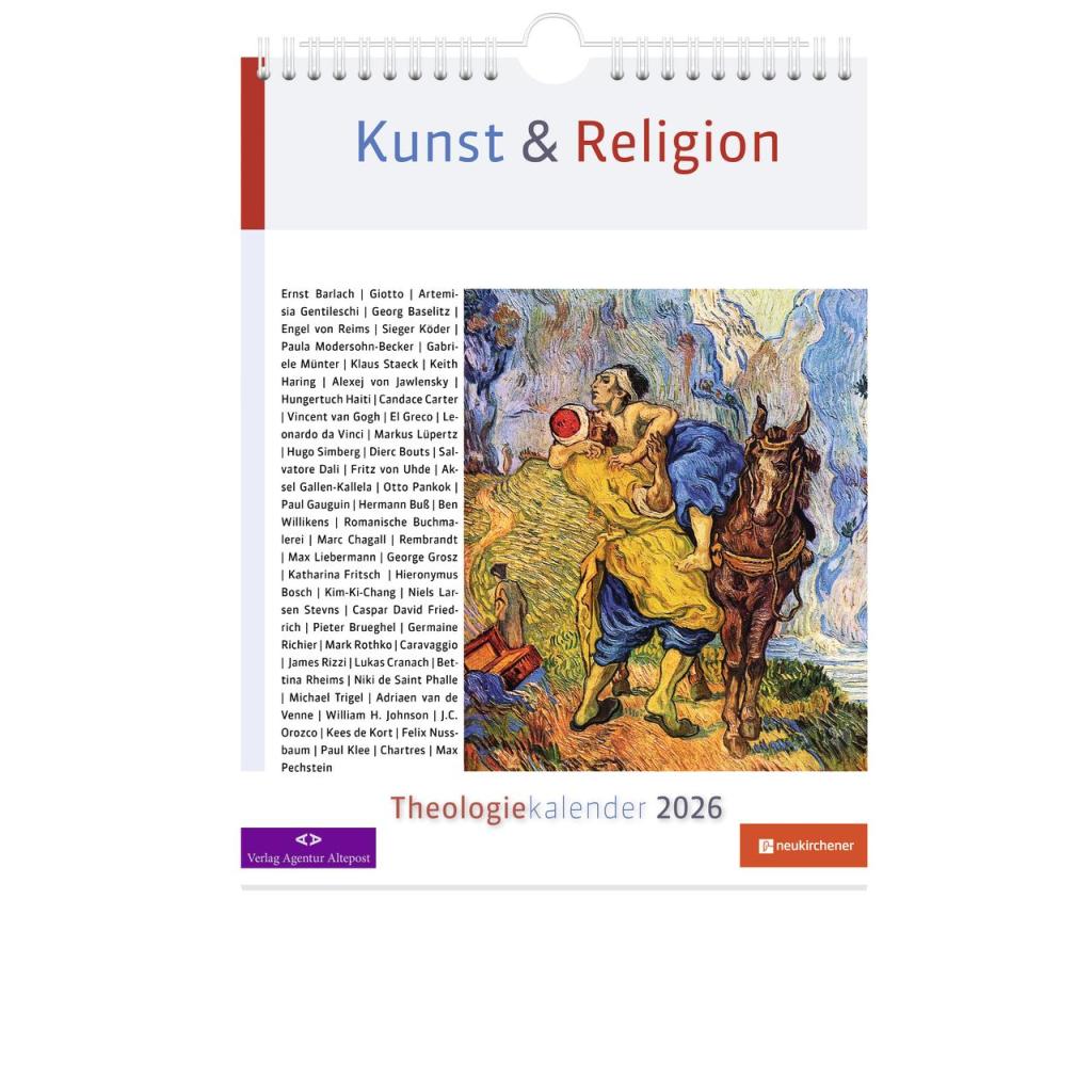 Theologiekalender 2026 Dieser theologisch und kulturell orientierte Wandkalender stellt für jede Woche interessante Persönlichkeiten, wichtige Ereignisse oder charakteristische Beispiele vor, die für das jeweilige Wochenthema bedeutsam sind und Lust auf mehr machen. Im Kalender 2026 dreht sich alles um das Thema "Kunst & Religion" und die Persönlichkeiten, die dazu kreativ gewirkt haben. Neben den hier bekannteren Namen wie Salvador Dalí, Paul Gauguin, Kees de Kort, Marc Chagall, Bettina Rheims, Katharina Grosse oder Niki de Saint Phalle wird eine breite Vielfalt vorgestellt: Kunstwerke und Künstler:innen aus Asien, Afrika, Europa und Südamerika, aus Mittelalter, Renaissance und Neuzeit, von klassischen Gemälden über Kirchenfenster bis zu Moderner Kunst und Skulpturen. Zusätzlich zum passend gewählten Auftaktbild stehen jeweils ein charakteristisches Zitat sowie eine kurze Biographie der vorgestellten Person oder eine Beschreibung des Kunstwerks. Ein übersichtliches Kalendarium führt die Leserinnen und Leser durch den Kalender, der unter den einzelnen Wochentagen die Namen von Personen, die an diesem Tag Geburtstag haben, bereithält. Der Kalender eignet sich zum persönlichen Entdecken und durch seine durchgehend farbige, ansprechende Gestaltung auch als Geschenk für Freunde oder Kolleginnen, die an Theologie, Kultur und Geistesgeschichte interessiert sind. Ausgestattet im Wandkalender-Format mit kartonierten Seiten und stabiler Ringlochung, 56 Blätter, vierfarbig, Format: 24,0 x 31,5 cm.
