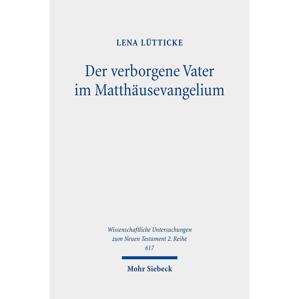 Lena Lütticke's work focusses on God as "Father who is and sees in secret" in Matt. 6 and relates this epithet to the overall conception of God in the Gospel of Matthew. It also traces the notion of God's hidden presence - which is a key concept for Matthew's prayer theology - in Jesus' prayer practice throughout the narrative.