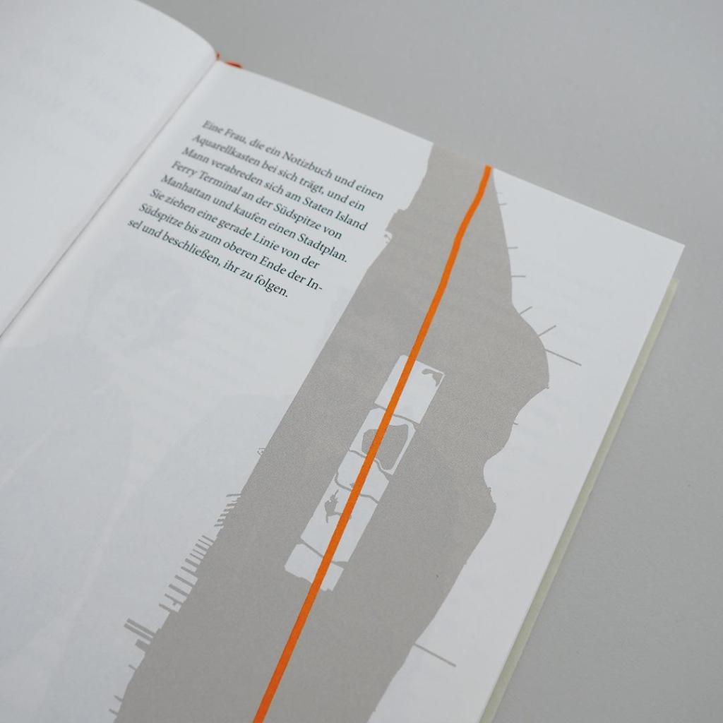 Ein Journalist und eine Künstlerin, Niklas Maak und Leanne Shapton, wandern zwei Tage von der Südspitze Manhattans bis zur Nordspitze der Insel an der 220. Straße. Sie lassen sich vom Zufall treiben und beobachten die Stadt: die Löcher in den Straßen, die gelben Taxen, die alten Backsteinfassaden, den chinesischen Schrotthändler, die Millionäre in ihren Bentleys, die Überwachungskameras, den Trump-Tower, die Flugzeuge am stahlblauen Himmel. Niklas Maak macht sich Notizen, Leanne Shapton aquarelliert. Nach und nach entsteht ein ungewöhnliches, sehr individuelles Bild von New York: unsere Gegenwart, als Mikrokosmos gebannt auf einer Insel im Hudson River.