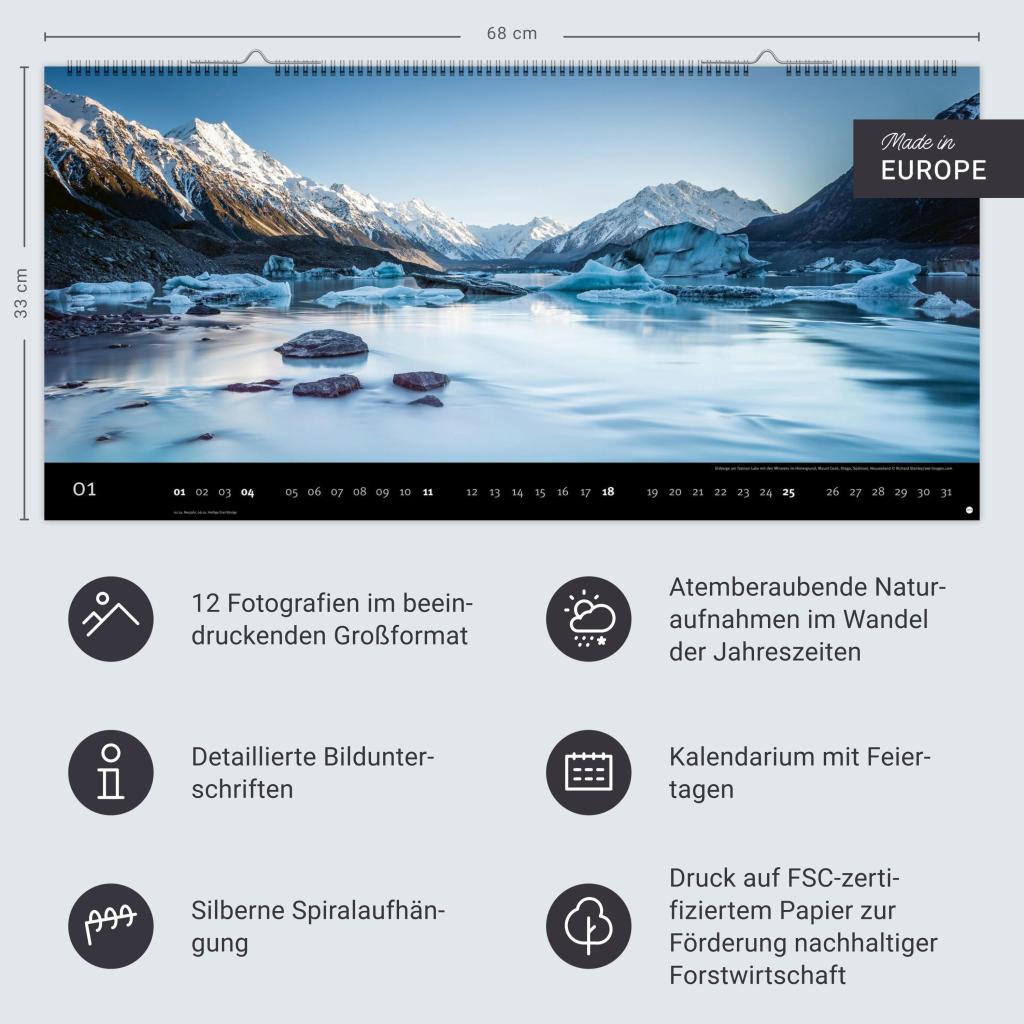 Großer Foto-Wandkalender XL. Landschaften-Kalender 2026 mit atemberaubenden Fotos. 68 x 33 cm Querformat.