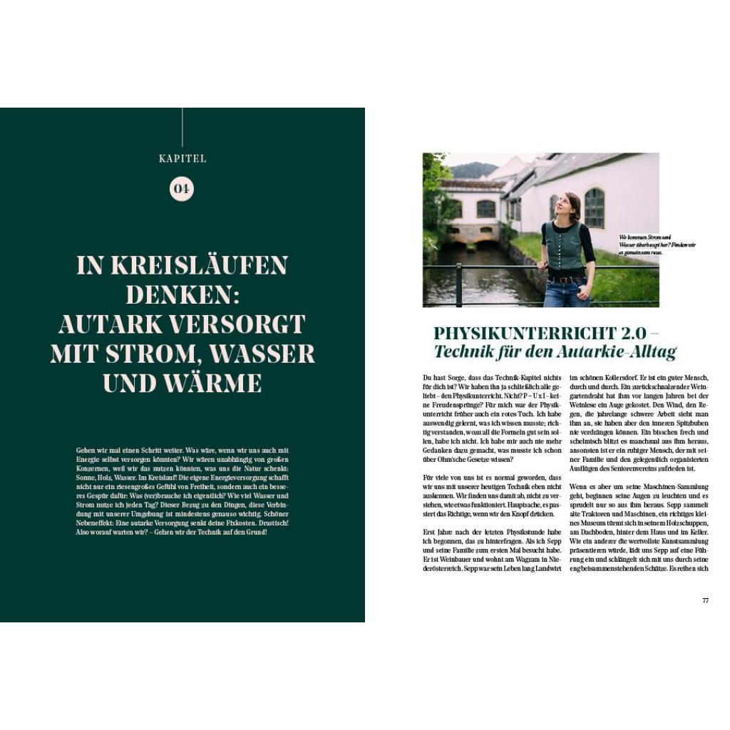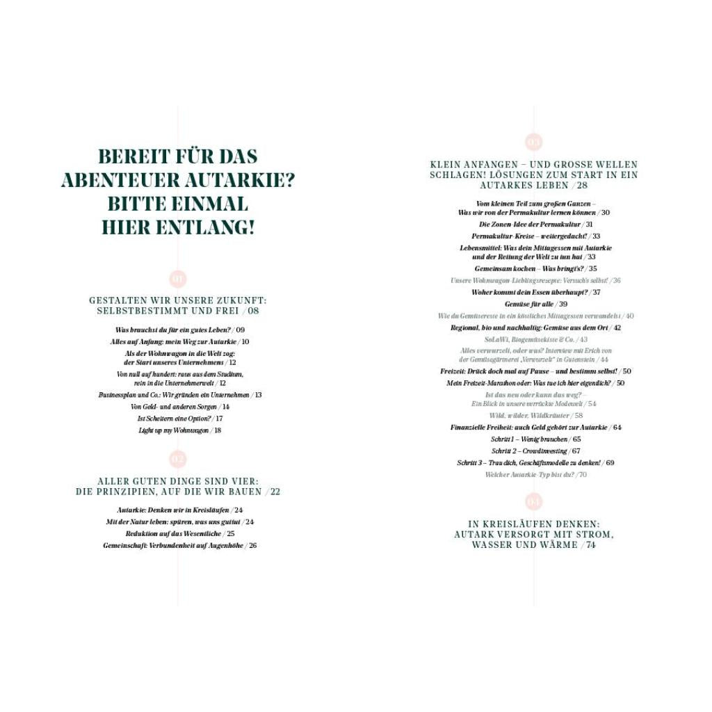 DIESES BUCH WIRD KLIMAPOSITIV HERGESTELLT, CRADLE-TO-CRADLE GEDRUCKT UND BLEIBT PLASTIKFREI UNVERPACKT. SELBSTBESTIMMT UND FREI: GESTALTEN WIR UNSERE ZUKUNFT! Träumst du schon lange von deiner eigenen HUMUSTOILETTE mit Aussicht auf deinen wuchernden Garten? Stellst du dir dein zukünftiges Ich vor - entspannt auf der Terrasse eines AUTARKEN MINIHAUSES? Grübelst du darüber nach, wie du deine WOHNUNG MIT NACHHALTIGEN MATERIALEN RENOVIEREN kannst? Oder willst du ganz locker etwas mehr über Kreisläufe erfahren - Energie, WASSER, LEBENSMITTELPRODUKTION? So oder so: Wenn du dich danach sehnst, UNABHÄNGIGER ZU WERDEN, dich freier zu fühlen, dann bist du hier genau richtig. Denn viele von uns spüren: Die Welt steht Kopf, einiges läuft schief heutzutage - Klimawandel, Ressourcenverschwendung, Ausbeutung, Systemzwänge. Also: Was wäre, wenn du DEIN LEBEN SELBSTBESTIMMTER GESTALTEN könntest? Und was brauchst du eigentlich für ein gutes Leben? Fragen, die sich auch Theresa Mai gestellt hat und sich auf die Suche nach konkreten Lösungen gemacht hat. Mit der Gründung ihres Unternehmens "Wohnwagon" ist ihr genau das gelungen: ein zukunftsfähiges Leben, reduziert auf das Wesentlichste. Dabei ging es aber nie nur um ein CHARMANTES TINY HOUSE, sondern um das DENKEN IN KREISLÄUFEN, darum Mut zu machen für die kleinen Schritte und darum aufzuzeigen, wie alles zusammenhängt: bauen und wohnen mit der Natur, lebendige Gemeinschaft und vor allem mehr Autarkie. SCHRITT FÜR SCHRITT: FINDE DEINEN WEG ZUR AUTARKIE AUTARKIE - ein sattes Wort, oder? Siehst du jetzt gerade einen einsamen Hof, abgeschieden von jeglicher Zivilisation, vor deinem inneren Auge? Klar, auch das ist eine Form von autarkem Leben. Aber sich EIN STÜCK WEIT UNABHÄNGIGER zu machen, bedeutet nicht, das komplette Dasein von heute auf morgen umzukrempeln. Autarkie lässt sich ganz einfach, SCHRITT FÜR SCHRITT UND MIT KLEINEN MODELLEN IN DEIN LEBEN INTEGRIEREN - ganz nach deinen Bedürfnissen und deinem Geschmack: Der KNACKFRISCHE SALAT AUS DEM EIGENEN GARTEN oder der Bio-Gemüsekiste, die PHOTOVOLTAIK-ANLAGE AM DACH, mit der du dich mit Strom und Wasser selbstversorgen kannst, gelebtes Handwerk, lebendige Gemeinschaft oder neues Wirtschaftsdenken. Du bestimmst, wie autark du leben möchtest und wie deine INDIVIDUELLE, NACHHALTIGE UND ZUKUNFTSORIENTIERTE VERÄNDERUNG aussehen soll. Vielleich beginnst du aber auch erst einmal damit, den alten Schrank aufzumotzen, bevor du ihn zur Müllkippe bringst, oder du verwendest bei der nächsten Renovierung regionale und natürliche Baustoffe. Denn: auch das ist Autarkie! Finde heraus, was es bedeutet, wenn du deine Grundbedürfnisse selbst stillen kannst. Spürst du sie schon, die Sehnsucht nach Freiheit, Unabhängigkeit, Selbstbestimmung? BYE-BYE STADT, HALLO DORF: GEMEINSCHAFT NEU ENTDECKT Bist du in Gedanken noch beim autarken Einsiedlerhof, allein und einsam hinter den sieben Bergen? Dann solltest du unbedingt in dieses Buch reinschnuppern. Denn hier verrät dir die Autorin, dass es bei Autarkie nicht darum geht, Dinge allein zu stemmen. Sondern vielmehr um DAS SCHAFFEN VON NETZWERKEN UND AUSTAUSCHBEZIEHUNGEN, um die GEMEINSCHAFT und darum, Projekte gemeinsam umzusetzen. Dazu zählt auch das Konzept der DORFBELEBUNG das Theresa erfolgreich vorlebt: In der kleinen Gemeinde Gutenstein, in Niederösterreich, entwickelt sich ein vielseitiges Genossenschaftsprojekt, ein ehemaliges Gasthaus wurde gemeinsam gekauft und renoviert, neue Arbeitsplätze werden geschaffen. Viele weitere Projekte sind im Entstehen und zeigen, wie DAS LEBEN AUF DEM DORF zukünftig organisiert sein könnte. Was wir dir sagen wollen: AUTARKIE IST BUNT. Du kannst im Kleinen beginnen oder gleich das große Ganze schaffen, Strom und Wasser aus Sonnenlicht gewinnen oder lernen, Kaputtes zu reparieren. In diesem Buch zeigt dir Theresa, wie deine Vision von einem UNABHÄNGIGEREN, SELBSTBESTIMMTEREN LEBEN real werden kann. Alles, was du dafür tun musst: die unglaubliche Vielseitigkeit der Autarkie entdecken! ¿ IT'S ALL ABOUT KREISLÄUFE, BABY: Autarkie bedeutet, IN KREISLÄUFEN ZU DENKEN und zu leben. Die Natur macht's vor und wir machen es ihr nach: erneuerbare Energie aus Sonnenlicht, die Sumpfpflanzen-Kläranlage zur natürlichen WASSERREINIGUNG am Dach oder gelebte PERMAKULTUR in deinem Garten. ¿ DREAM BIG, LIVE SMALL: Der WOHNWAGON - ein Flaggschiff für zukunftsfähiges Leben aus NATÜRLICHEN, GESUNDEN UND REGIONALEN BAUMATERIALIEN auf kleinem Raum, reduziert auf das Wesentlichste. So kann ressourcenschonendes, nachhaltiges Wohnen und Bauen künftig sein. ¿ GEMEINSAM STATT EINSAM: Autarkie bedeutet NETZWERKE schaffen, KOOPERATIONEN eingehen, ZUSAMMENARBEIT und Vertrauen. Denn: Gemeinsam sind wir unabhängiger!