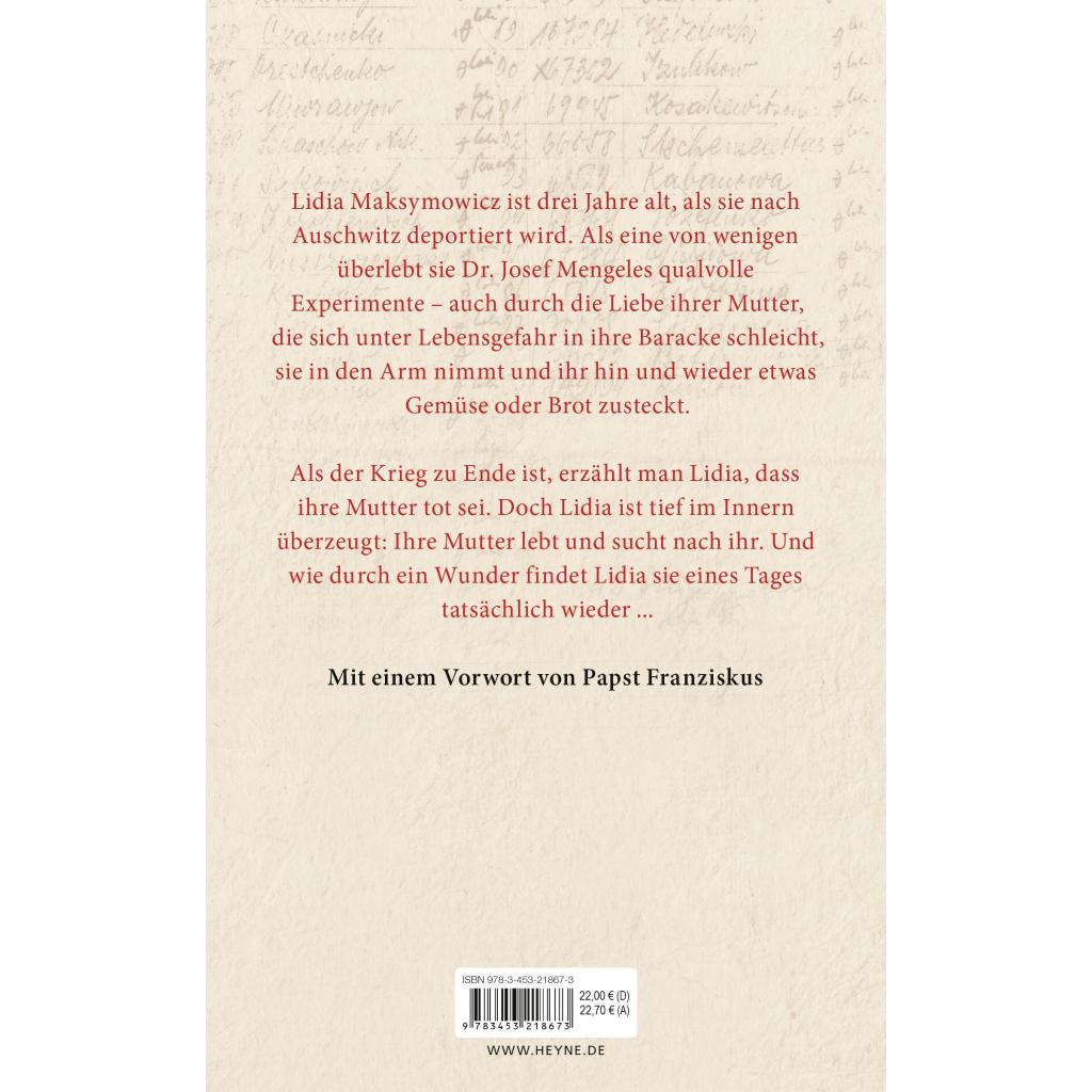 Lidia Maksymowicz ist drei Jahre alt, als sie mit ihrer Mutter in das Konzentrationslager Auschwitz-Birkenau deportiert wird. Dreizehn Monate lang überlebt sie in dieser Hölle, getrennt von ihrer Mutter, in der Kinderbaracke. Sie ist eines der kleinen »Versuchskaninchen« von Dr. Josef Mengele, der seine lebensbedrohlichen »Experimente« an ihr durchführt. Lidia sieht, wie die anderen Kindern nach und nach sterben, an den Folgen der Experimente, am Hunger. Sie selbst ist eine der Wenigen, die überlebt - auch durch die Liebe ihrer Mutter, die sich in lebensgefährlichen Momenten in ihre Baracke schleicht, ihr etwas Gemüse oder Brot zusteckt, sie in den Arm nimmt und ihr einbläut, vor den SS-Männern keine Emotionen zu zeigen, um nicht ihren Zorn auf sich zu ziehen. Nach quälenden 13 Monaten ist der Krieg zu Ende. Doch nach der Befreiung findet Lidia ihre Mutter in Auschwitz nicht. Man erzählt ihr, dass sie tot sei. Doch Lidia hört nicht auf zu glauben, dass ihre Mutter am Leben ist und nach ihr sucht. Und tatsächlich gleicht es einem Wunder, dass Lidia sie eines Tages wiederfindet... Lidia Maksymowicz hat beschlossen, ihr Leben dem Erzählen ihrer Geschichte und dem Schreiben zu widmen. Denn es kann sich alles wiederholen. »Wir sind wieder dabei, Worte des Hasses, der Spaltung, der Abschottung zuzulassen. Wenn ich sie aus dem Munde von Politikern höre, verschlägt es mir den Atem. Hier, in meinem Europa, zu Hause, immer noch diese schrecklichen Worte. Gerade jetzt, in Momenten wie diesen, kann die Dunkelheit wieder über uns hereinbrechen.« Ausstattung: mit Bildteil