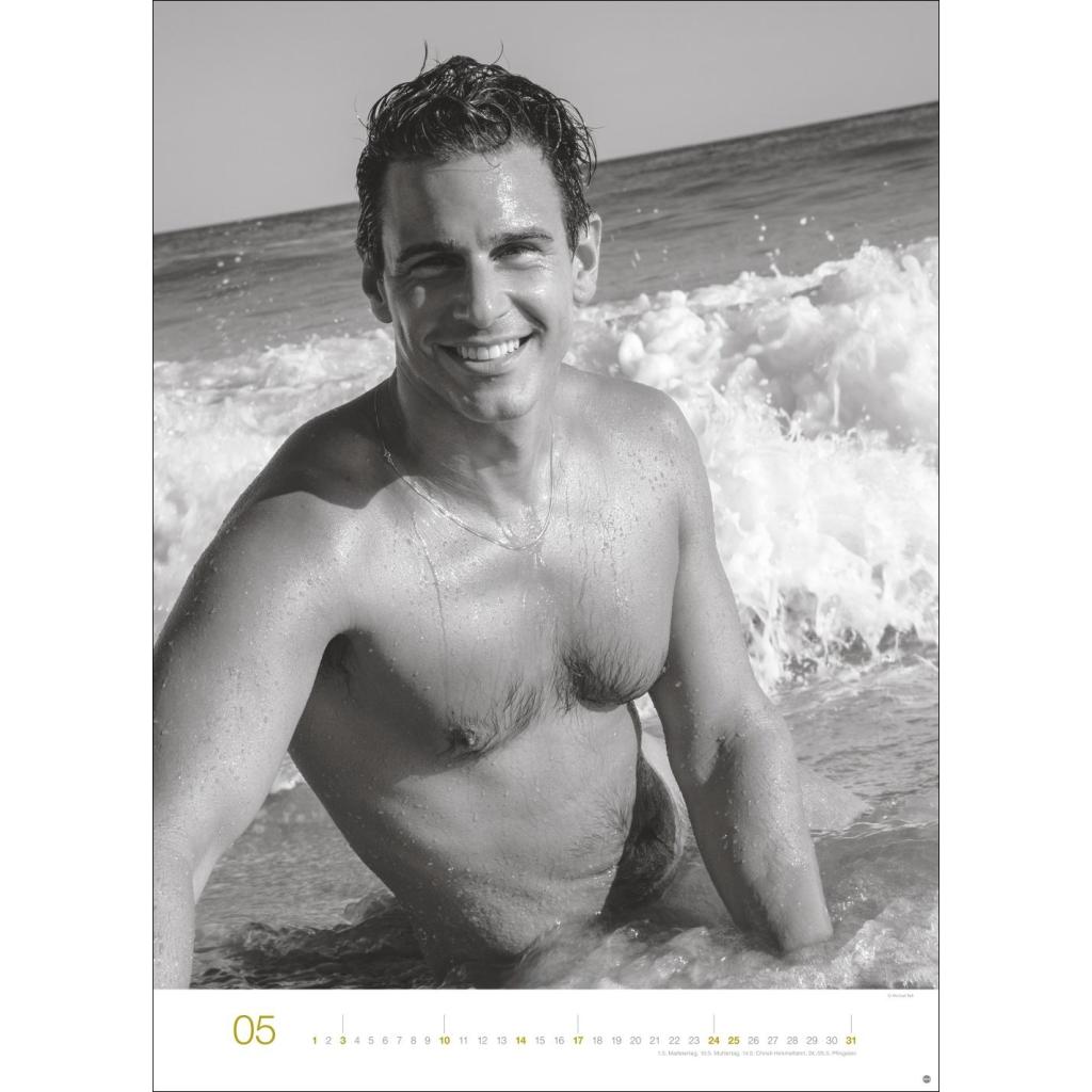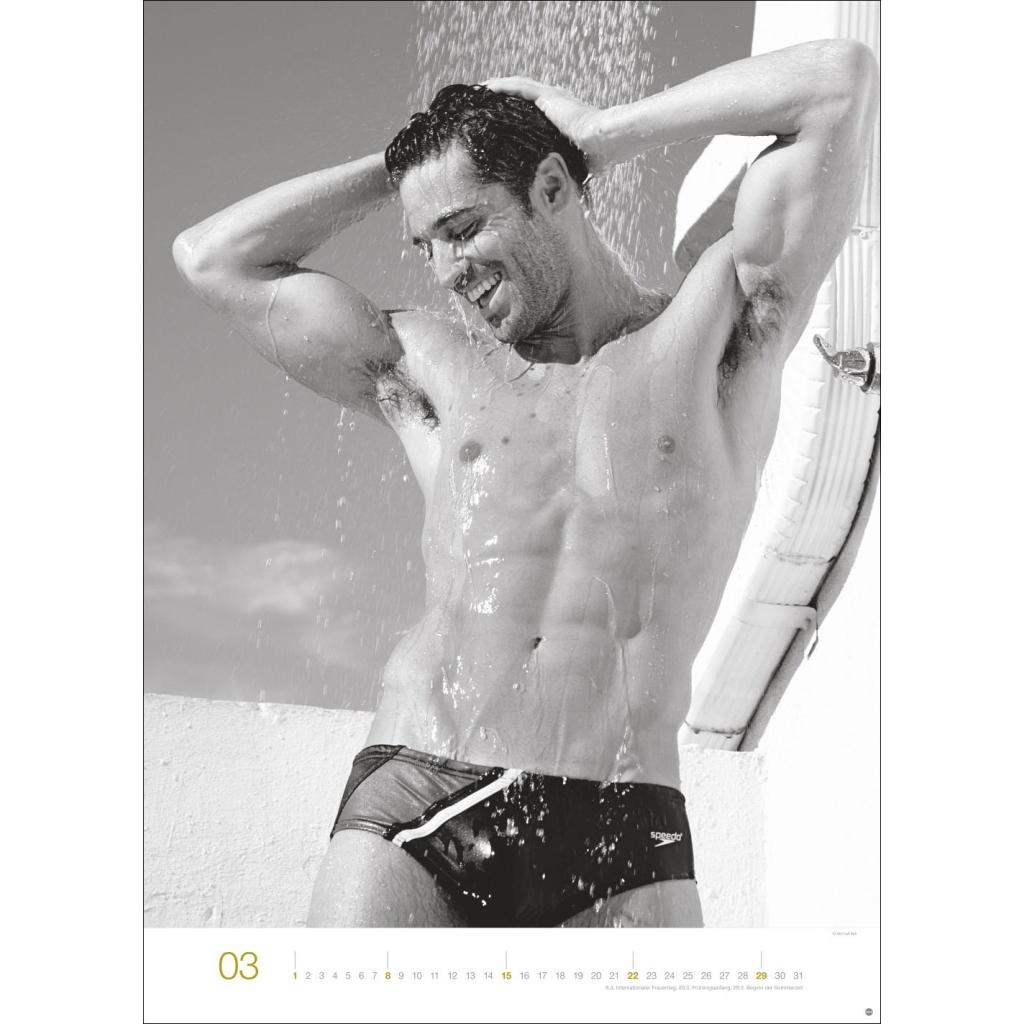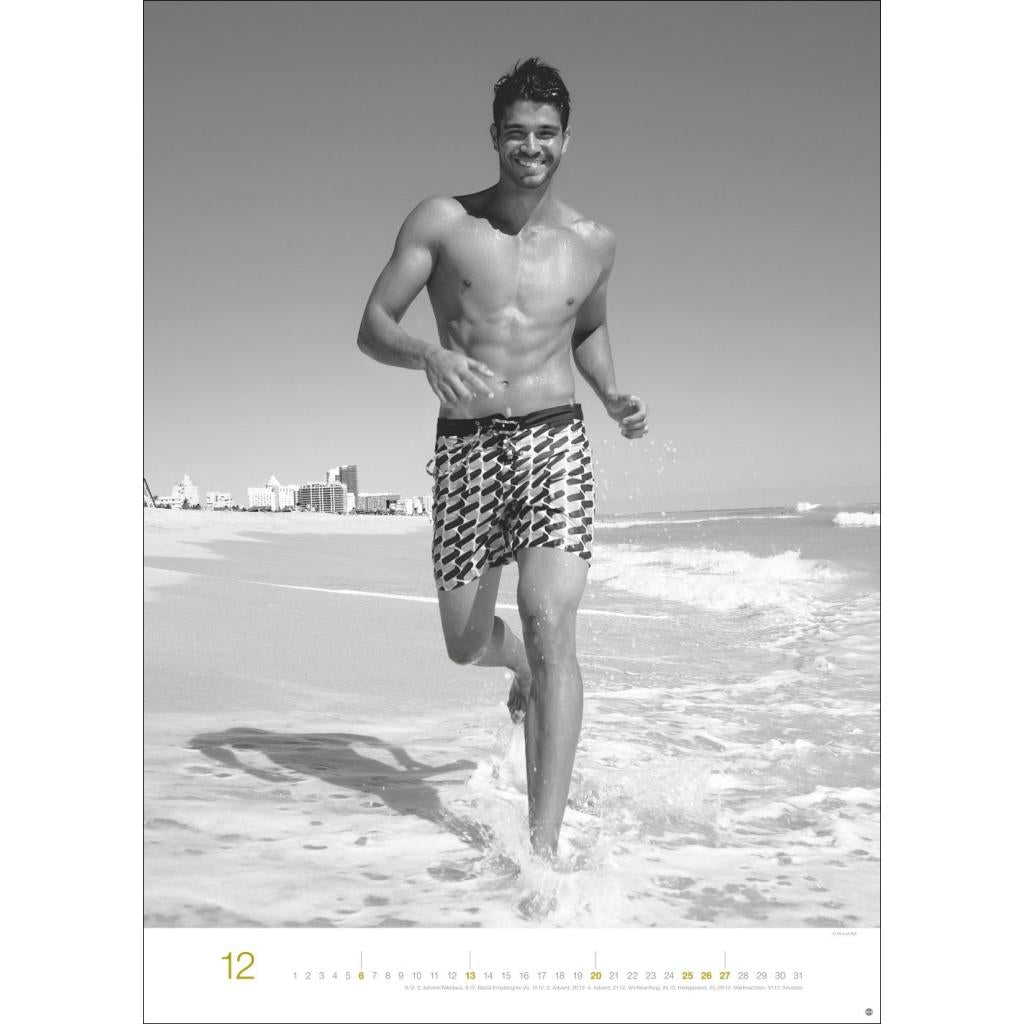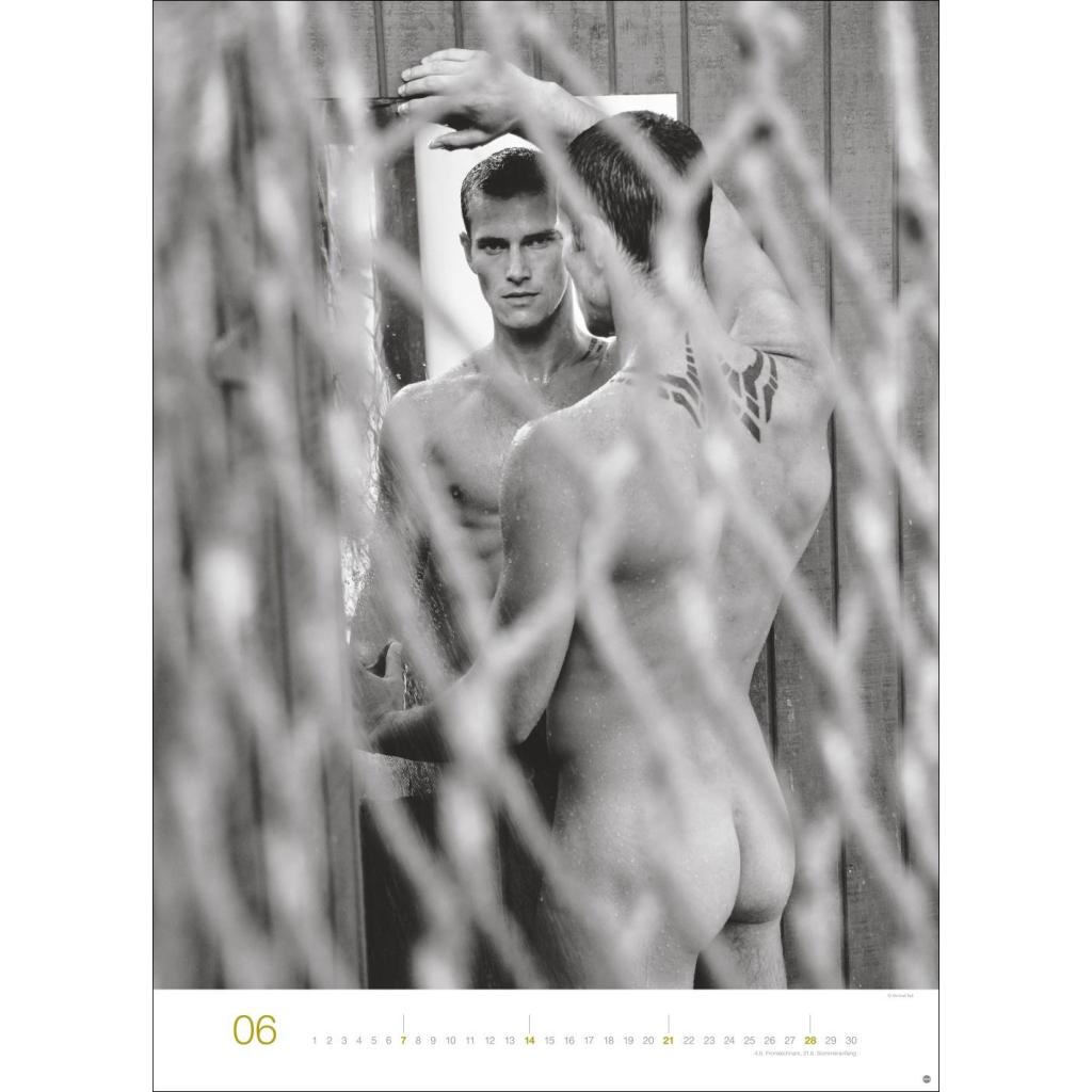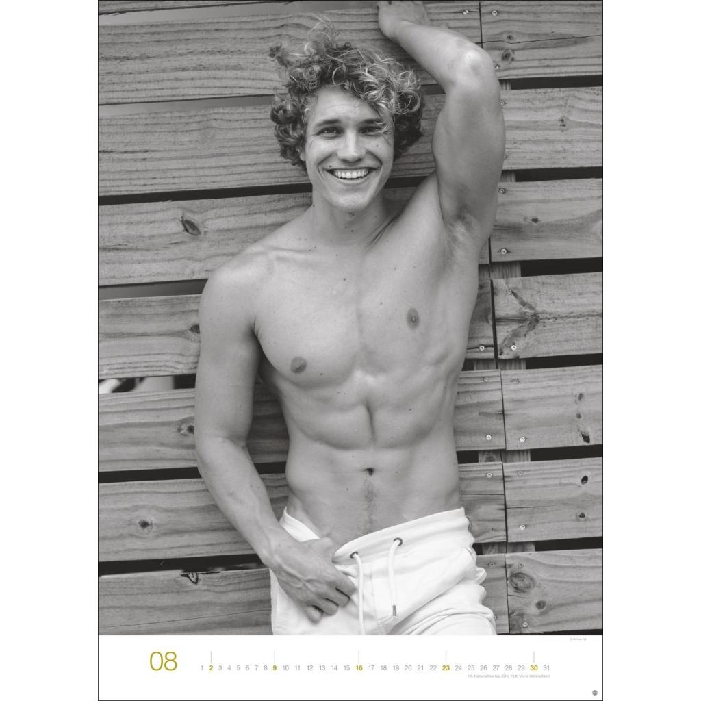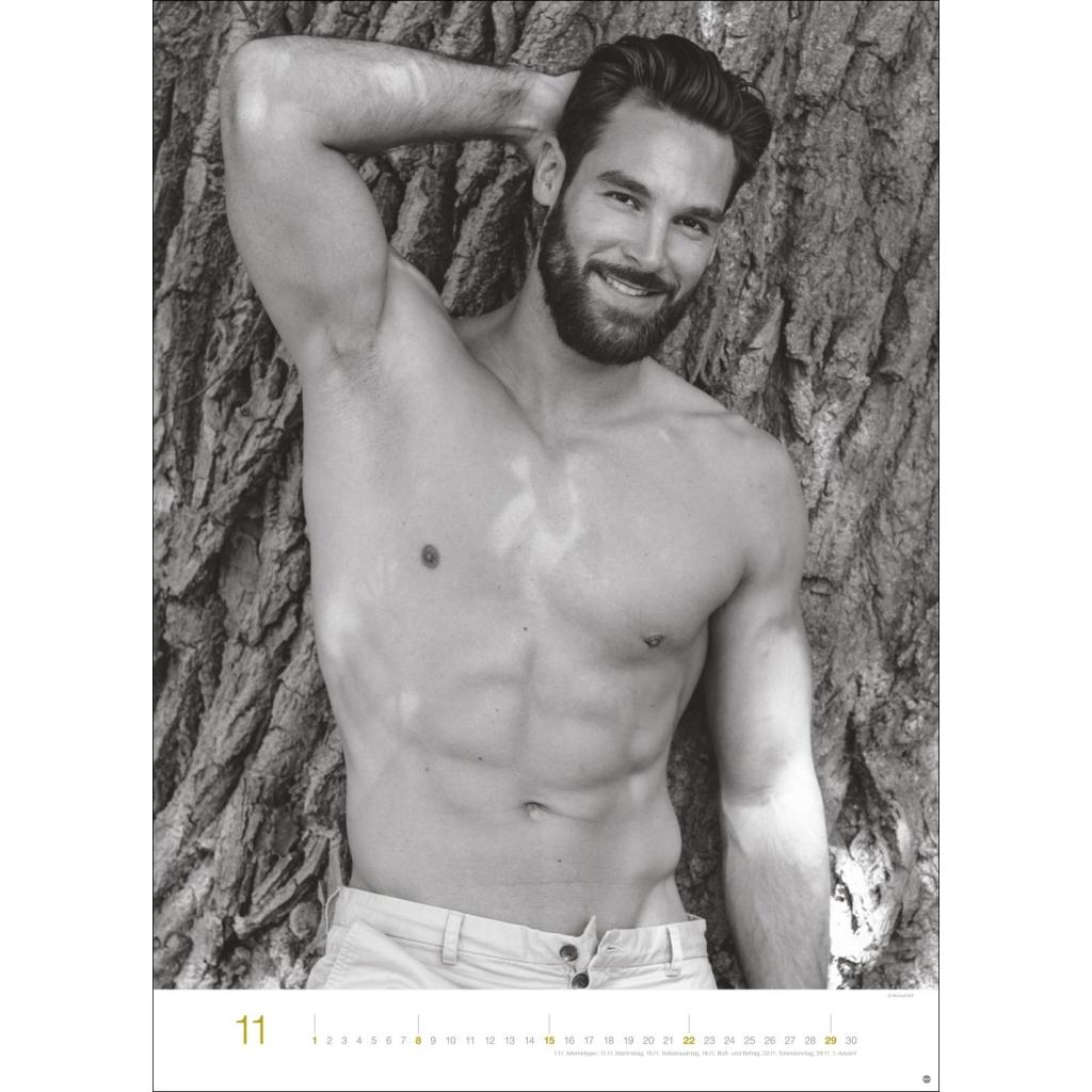 Jeden Monat ein sinnliches Schwarz-Weiß-Foto in einem Kalender im Großformat. Schöne Männer im Wandkalender XXL 2026. Hochformat 49 x 68 cm.
