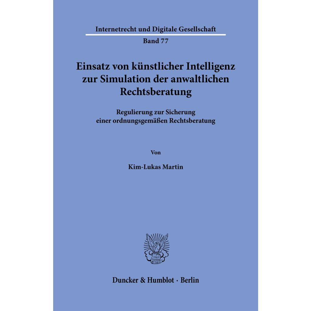 | Fachschema: | Advokat~Jurist / Rechtsanwalt~Rechtsanwalt - Rechtsbeistand~Rechtspflege - Rechtspfleger~EDV / Theorie / Recht~Recht (EDV)~Intelligenz / Künstliche Intelligenz~KI~Künstliche Intelligenz - AI~Privatrecht~Zivilgesetz~Zivilrecht |