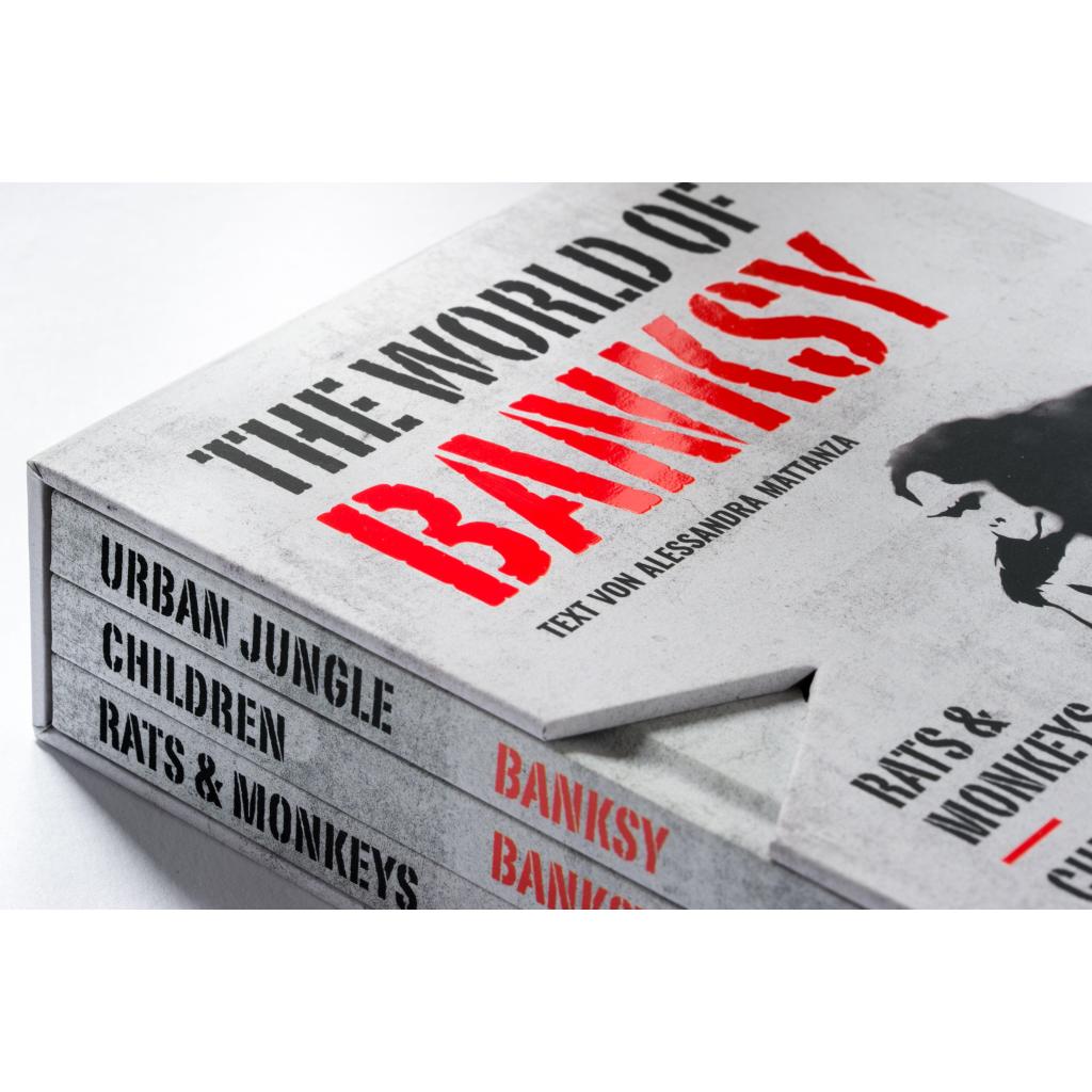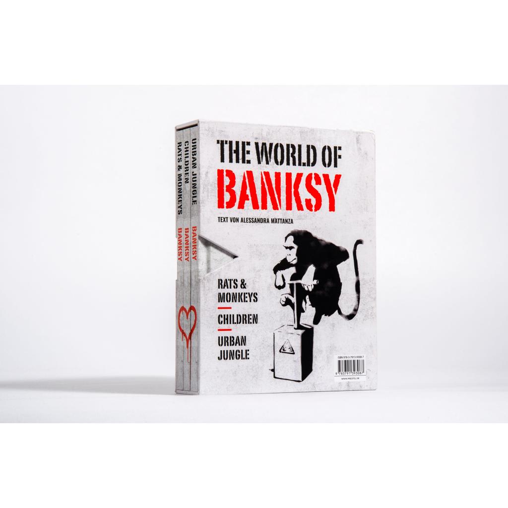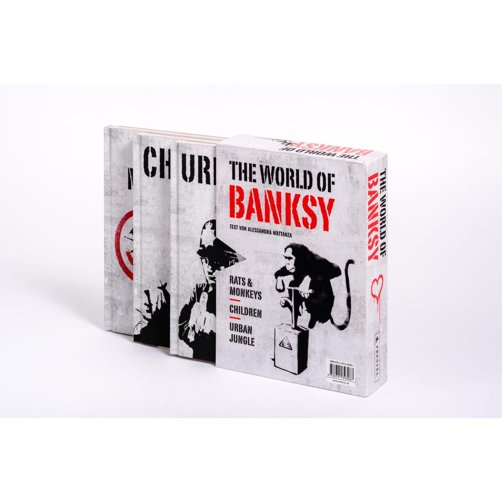 Das große Banksy-Paket: Street Art mal Drei Kosmos Banksy: Kein anderer Street Artist hat so deutliche Spuren im internationalen Stadtbild und in der Kunstlandschaft hinterlassen wie der geheimnisvolle Banksy. Seine Identität ist bis heute nicht geklärt, die Begeisterung seiner Fans ist ungebrochen. Alessandra Mattanza ist Banksy seit vielen Jahren auf der Spur; sie ist die wohl beste Kennerin seines Kunst-Kosmos. Im großen Banksy-Paket hat sie die besten seiner ikonischen Figuren versammelt: Affen, Ratten und Kinder stehen symbolisch für die >andere Seite