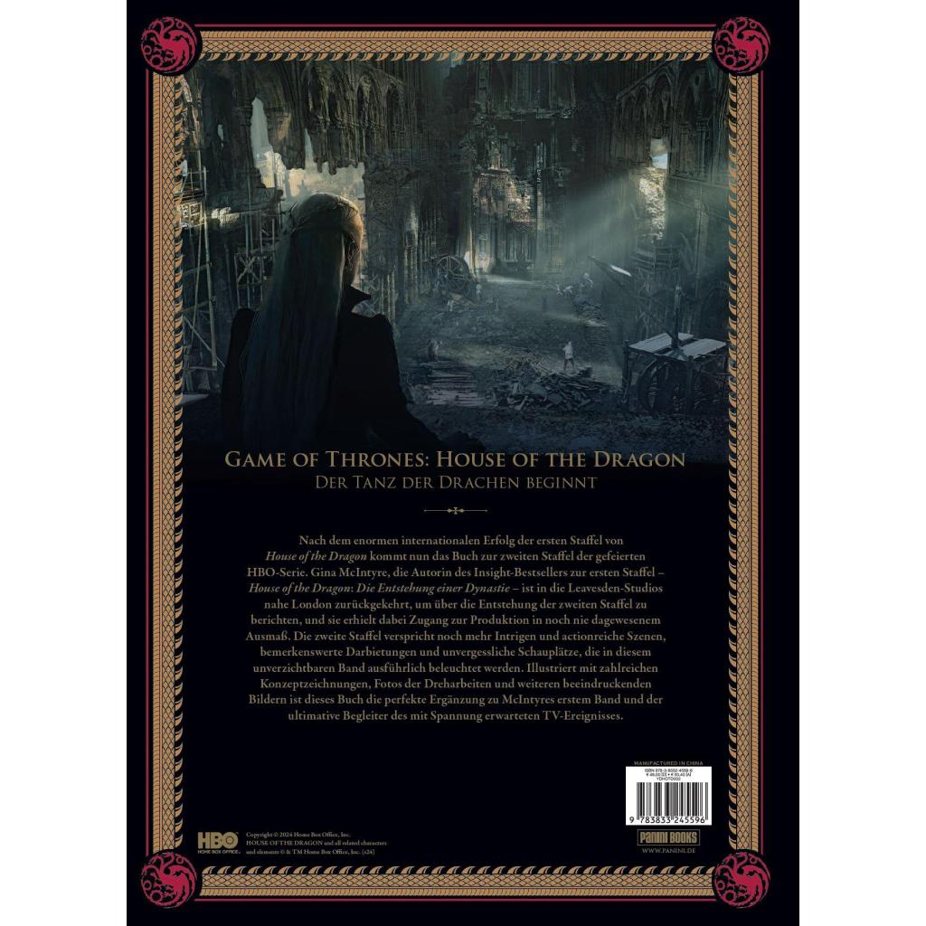 GAME OF THRONES: HOUSE OF THE DRAGON - DER TANZ DER DRACHEN BEGINNT Nach dem enormen internationalen Erfolg der ersten Staffel von House of the Dragon kommt nun das Buch zur zweiten Staffel der gefeierten HBO-Serie. Gina McIntyre, die Autorin des Insight-Bestsellers zur ersten Staffel - House of the Dragon: Die Entstehung einer Dynastie - ist in die Leavesden-Studios nahe London zurückgekehrt, um über die Entstehung der zweiten Staffel zu berichten, und sie erhielt dabei Zugang zur Produktion in noch nie dagewesenem Ausmaß. Die zweite Staffel verspricht noch mehr Intrigen und actionreiche Szenen, bemerkenswerte Darbietungen und unvergessliche Schauplätze, die in diesem unverzichtbaren Band ausführlich beleuchtet werden. Illustriert mit zahlreichen Konzeptzeichnungen, Fotos der Dreharbeiten und weiteren beeindruckenden Bildern ist dieses Buch die perfekte Ergänzung zu McIntyres erstem Band und der ultimative Begleiter des mit Spannung erwarteten TV-Ereignisses.