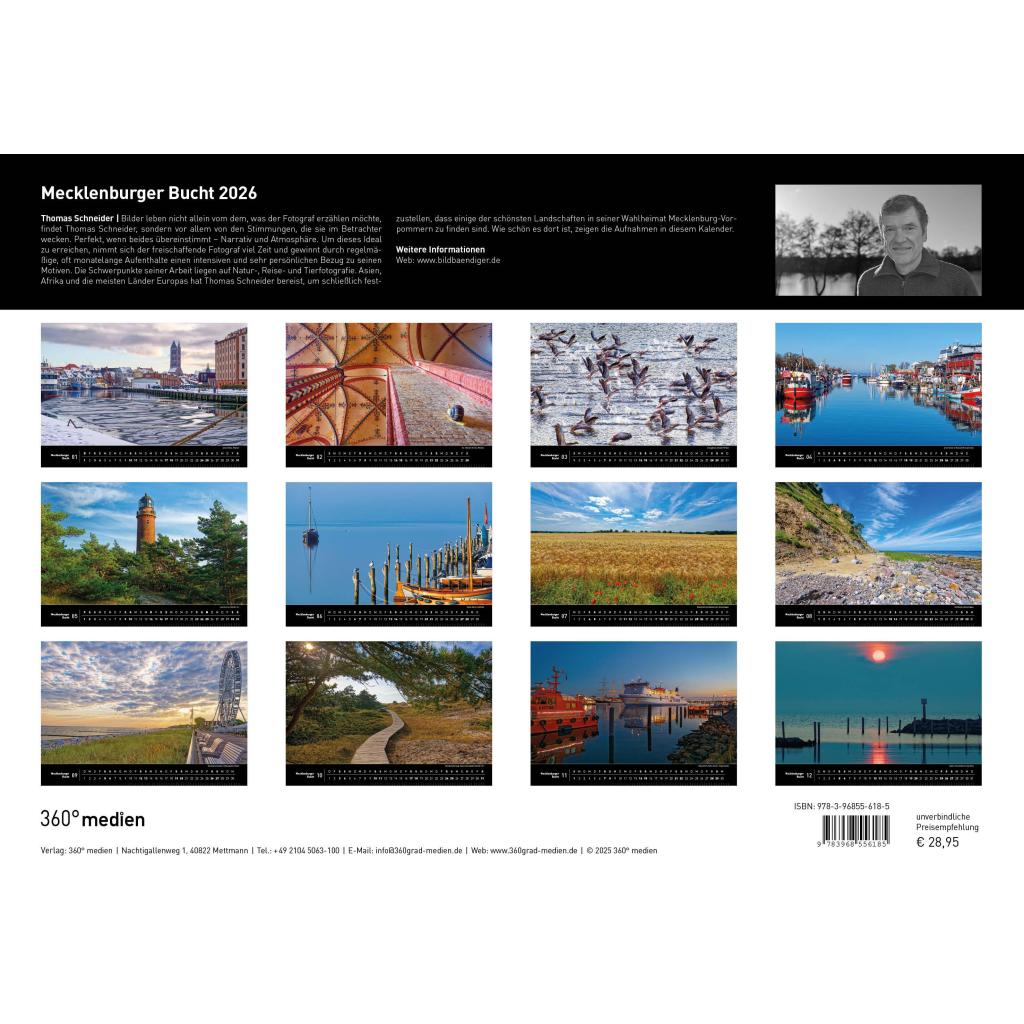 Aus traumhaften Aufnahmen des Fotografen Thomas Schneider rund um die Mecklenburger Bucht hat die Redaktion von 360° medien die 13 schönsten Motive ausgewählt und in diesem Kalender zusammen gestellt. Präsentiert werden die Fotos auf hochwertigem Papier im Format 50 cm x 35 cm.