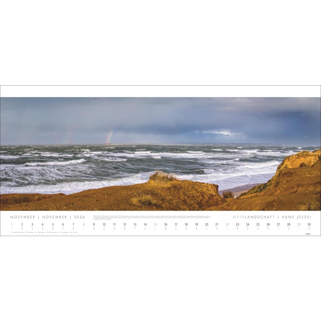 Großer Panorama-Wandkalender mit Fotos des bekannten Künstlers Hans Jessel. Meereslandschaften eingefangen in einem XXL-Fotokalender.