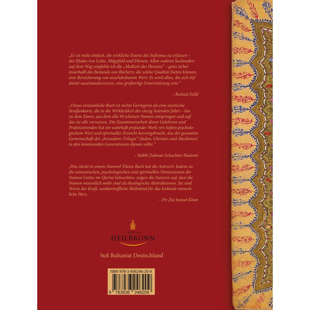 Das Buch nimmt die Leserin und den Leser mit in das Herz des Mysteriums der 99 heiligen Namen Gottes. Es ist ein Weg, um das Wesen der Grenzenlosigkeit Gottes zu verstehen und das göttliche Potential in jeder Seele zu entdecken. Zudem ist es ein umfassendes Handbuch, um durch die Phasen des spirituellen Weges fortzuschreiten und ein Manual für Lehrende, damit sie Lernende mit größerer Weisheit begleiten können: Als Heilerinnen und Heiler des Herzens. lm Verlauf dieser Entdeckungsreise wird der Leser systematisch mit dem universellen Mystizismus vertraut gemacht, der im Qur'an und in den klassischen Sü-Traditionen verschlüsselt liegt - und gleichzeitig mit einem modernen psychologischen Ansatz, der mit den 99 Namen arbeitet, um Individuation und Ganzheit zu verwirklichen.