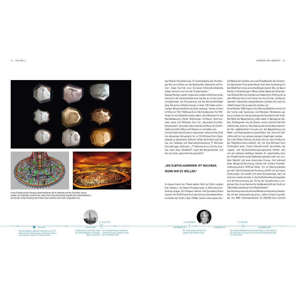 Das Buch zu Hamburgs kulturellem und städtebaulichem Jahrhundertprojekt zeichnet auf knapp 250 Seiten die komplette Entstehungsgeschichte nach und dokumentiert das von den Schweizer Star-Architekten Herzog & de Meuron entworfene Gebäude bis ins Detail. Darüber hinaus liefert es alle Hintergründe zum vieldiskutierten Bau und porträtiert die einzigartige Geschichte der Musikstadt Hamburg. Autor des reich bebilderten Werks ist der Kulturjournalist Joachim Mischke, der seit den Anfängen um die Jahrtausendwende über die Elbphilharmonie berichtet. Die Fotos des Fotografen Michael Zapf, der das Projekt ebenfalls über Jahre begleitet hat, bieten atemberaubende Innen- und Außenansichten des neuen Wahrzeichens der Hansestadt und dokumentieren den beeindruckenden Bauverlauf. Die Elbphilharmonie, spektakulär im Hamburger Hafen gelegen, umfasst in einer nie dagewesenen Kombination aus traditioneller Bauweise und futuristischem Design einen der besten Konzertsäle der Welt, ein Hotel, eine offene Plaza und Luxus-Apartments. "Die gläserne Welle auf dem Backsteinbau wird in Zukunft das Bild sein, das international für die Kulturnation Deutschland steht, ähnlich ikonisch wie der Eiffelturm für Frankreich oder das Opernhaus von Sydney für ganz Australien." (Joachim Mischke).