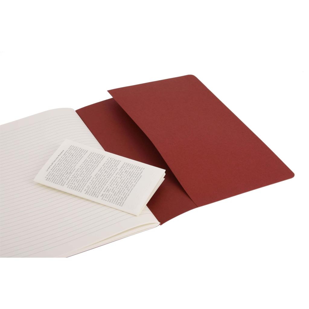 - stabiler Einband aus rotem Karton mit sichtbarer Fadenheftung - Die letzten 16 Seiten sind heraustrennbar - mit einer große Innentasche für lose Zettel - Text zur Geschichte von Moleskine - LINIERT,, chlorfrei gebleichtes Papier - 3er-SET,