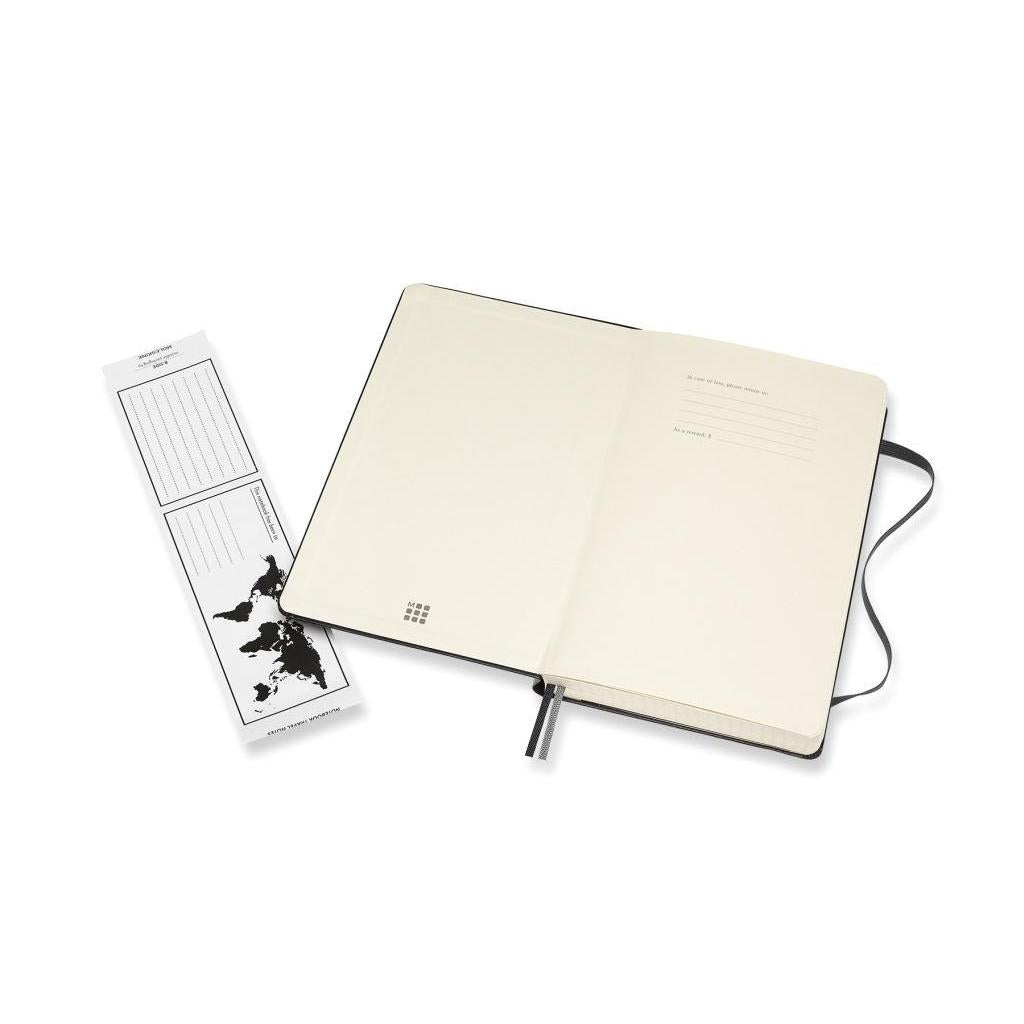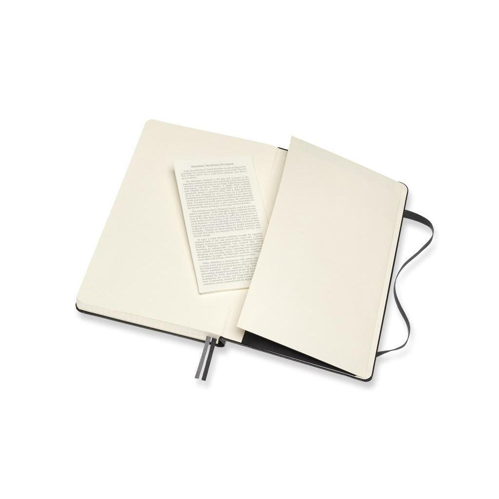 Diese ausklappbare Version des Klassik Notizbuchs hat 400 Seiten und 2 Lesezeichenbänder, damit Sie mehr Ideen als jemals zuvor erfassen und im Auge behalten können. Da das Notizbuch mit weichem oder festem Einband, mit linierten, blanko, gepunkteten oder karierten Seiten erhältlich ist, können Sie das Layout wählen, das für Ihren niemals endenden Notizbedarf am besten geeignet ist. Das Klassik Notizbuch ist der Erbe und Nachfolger des legendären Notizbuchs der Künstler und Denker der letzten zwei Jahrhunderte. Dieses einfache, aber genial gestaltete Notizbuch lädt Sie dazu ein, Ihre eigene Geschichte auf seinen Seiten aufzuschreiben - mit Worten, Zeichnungen, Listen, Notizen, professionellen Projekten und kreativen Inhalten. Der ausklappbare Klassik Notizbuch verfügt über die ikonischen Moleskine Designelemente, darunter abgerundete Ecken, eine innere Tasche für lose Notizen, die Sie unterwegs sammeln, ein passendes Gummiband zum Verschließen, um Ihre Ideen zu schützen, und der gut sichtbare Hinweis ?In case of loss' mit Ihren Kontaktdaten und einem Hinweis auf eine Belohnung für denjenigen, der Ihre wertvollen Notizen findet. - Klassik Notizbuch mit festem und weichem Einband - Abgerundete Ecken - Gummiband zum Verschließen - Elfenbeinweißes Moleskine Papier - Doppeltes Lesezeichenband - Papier: 70 g/m², säurefrei, elfenbeinweiß, liniert - "In case of loss"-Hinweis auf dem Deckblatt - Erweiterbare Innentasche hinten - Wiederverwendbare Papierbanderole Rückseite mit zusätzlich gedruckten Werkzeugen - Liegt flach, öffnet sich um 180° - Die Geschichte von Moleskine ist in der Innentasche beigefügt - Die Moleskine SRL entwirft und vertreibt FSC®-zertifizierte Produkte