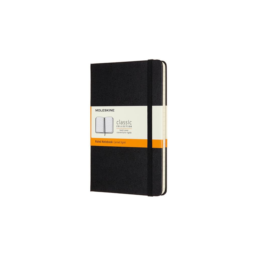 Klein genug, um in jede Handtasche zu passen, groß genug für die größten Ideen. Das neue mittelgroße Klassik Notizbuch von Moleskine schließt abgerundete Ecken ein, um es vor abgestoßenen Ecken zu schützen, und ein Gummiband zum Verschließen, um Ihre handgeschriebenen Gedanken und den kreativen Inhalt zu schützen. Ein farblich passendes Lesezeichenband hilft Ihnen dabei, sofort die richtige Seite Ihres Projekts zu finden und eine innere Falttasche ist perfekt, um die Notizen unterzubringen, die Sie im Laufe des Tages gesammelt haben. In den gut sichtbaren Moleskine-Hinweis ?In case of loss' vorne können Sie Ihren Namen Ihre Kontaktdaten und eine Belohnung eintragen - falls Sie Ihre wichtigen Notizen unterwegs vergessen. Das in klassischem Schwarz, Scharlachrot und Saphirblau erhältliche mittelgroße Notizbuch mit nach Ihrer Wahl blanko, linierten, karierten oder gepunkteten Seiten begleitet Sie überall hin und nimmt Ihre Geistesblitze auf, sobald sie erscheinen. - Klassik Notizbuch mit festem und weichem Einband - Abgerundete Ecken - Gummiband zum Verschließen - Elfenbeinweißes Moleskine Papier - Doppeltes Lesezeichenband - Papier: 70 g/m², säurefrei, elfenbeinweiß, liniert - "In case of loss"-Hinweis auf dem Deckblatt - Erweiterbare Innentasche hinten - Wiederverwendbare Papierbanderole Rückseite mit zusätzlich gedruckten Werkzeugen - Liegt flach, öffnet sich um 180° - Die Geschichte von Moleskine ist in der Innentasche beigefügt - Die Moleskine SRL entwirft und vertreibt FSC®-zertifizierte Produkte