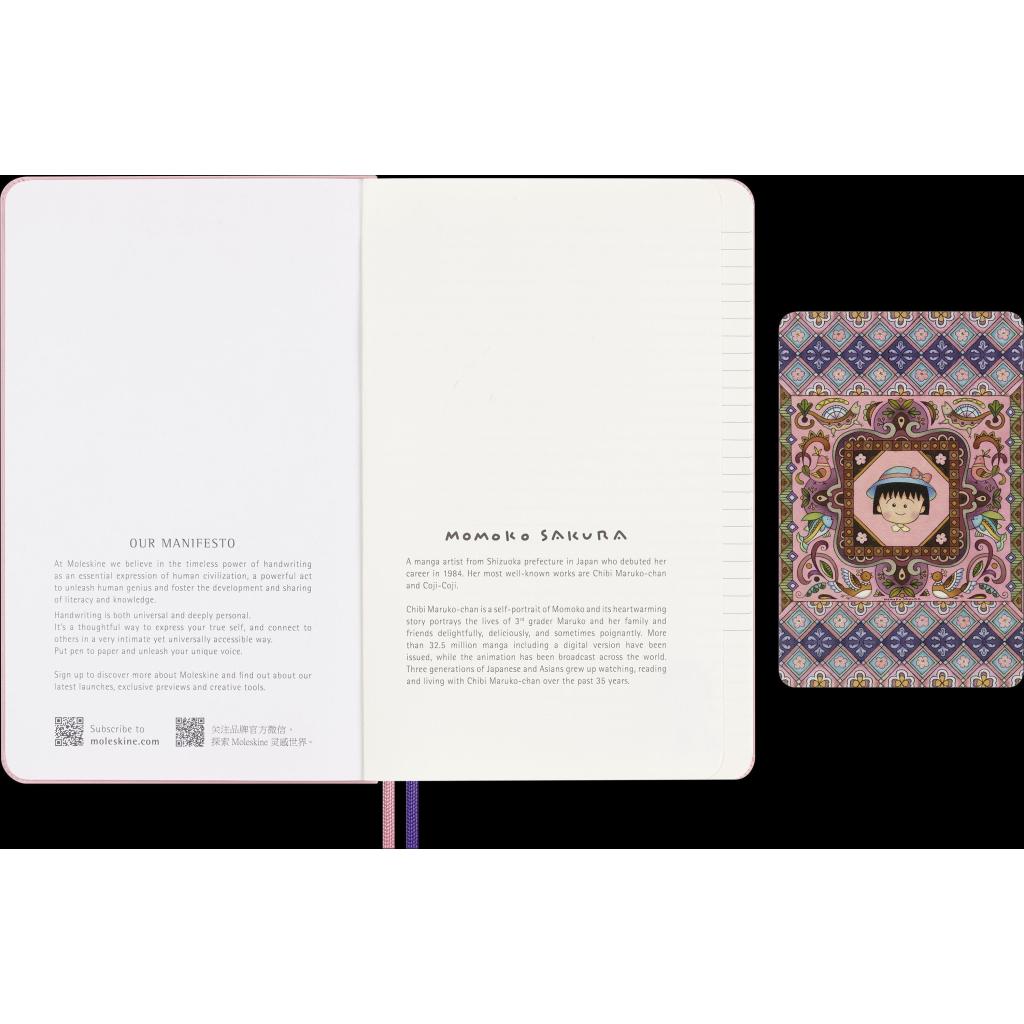 Entdecken Sie die Sakura Sonderausgaben mit Illustrationen der japanischen Manga-Schöpferin Momoko Sakura. Die Manga-Künstlerin Momoko Sakura ist die Schöpferin des beliebten Mangas Chibi Maruko-Chan. Die Serie basiert auf Momokos Kindheit und erzählt eine herzerwärmende und oft ergreifende Geschichte, die das Leben der Drittklässlerin Maruko und ihrer Familie und Freunde schildert. Zusammen mit der digitalen Version wurden bereits 32,5 Millionen Manga der Serie veröffentlicht; ein zugehöriger Anime-Film wurde rund um die Welt gezeigt. Drei Generationen von Japanern und Asiaten sind in den letzten 35 Jahren mit Chibi Maruko-Chan aufgewachsen, haben sie gesehen, gelesen und mit ihr gelebt. Dieses themenbezogene Notizbuch in limitierter Auflage zeigt Originalgrafiken der Künstlerin. Das Notizbuch hat einen besonderen Einband mit Linseneffekt, der sich aus verschiedenen Blickwinkeln verändert, während die Innenseiten mit Daumenkino-Illustrationen versehen sind. Enthalten sind außerdem Themensticker und eine Grußkarte, ebenfalls mit Motiven von Momoko Sakura. Teil der Moleskine 2024 Asian Kollektion mit Werken der japanischen Manga-Schöpferin Momoko Sakura, des chinesischen Künstlers Zeng Fanzhi und des führenden südkoreanischen Typografie-Designers Ahn Sang Soo: 3 Länder, 3 Genres. Alle Abbildungen Copyright © S.P.