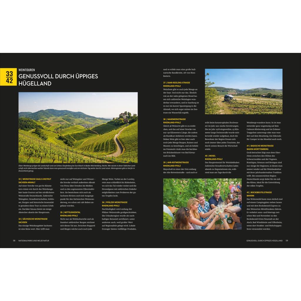 Im Eigenheim durch ganz Deutschland Deutschland in 225 atemberaubenden Reisen mit dem Wohnmobil oder Campervan erleben. Erleben Sie die tollsten Reiseziele auf vier Rädern. Entdecken Sie Deutschland wie nie zuvor. Dieser Reisebildband nimmt Sie mit auf abwechslungsreichen Touren durch die faszinierendsten Landschaften und Regionen Deutschlands und seiner reizvollen Nachbarländer. Durch das Wattenmeer, in den Harz, ins Moseltal oder in den Schwarzwald und an die Alpen. Durch historische Altstädte oder in pulsierende Metropolen, von Berlin über Hamburg bis München. Lassen Sie sich von atemberaubenden Bildern und detaillierten Beschreibungen zu unvergesslichen Erlebnissen inspirieren.