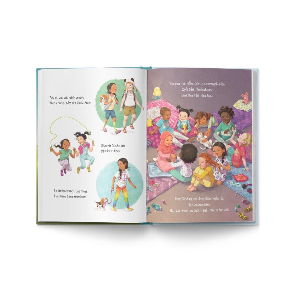Weg mit Rollenklischees: Mädchen können ihre Träume wahr werden lassen! Es gibt Milliarden Menschen auf der Welt. Aber dich gibt es nur einmal! Und die Welt braucht ein Mädchen wie dich. Eines, das stark, mutig und mitfühlend ist. Vielleicht bedeutet "mutig" für dich, als Klassensprecherin zu kandidieren. Vielleicht bedeutet "kühn" für dich, für dich selbst einzutreten. Egal, was es ist, sei einfach du selbst! Mädchen wachsen häufig mit dem Glauben auf, sie müssten vor allem nett, ordentlich und zurückhaltend sein. Frank und Carla Murphy räumen mit ihrem Diversity-Kinderbuch mit den gängigen Rollenbildern auf. Sie ermutigen Mädchen dazu, ganz sie selbst zu sein: ehrgeizig und zielstrebig, optimistisch und ausdauernd, neugierig und aufmerksam. Doch vor allem zeigen sie, dass allen Kindern die Welt offen steht! - Mädchen stärken: Sei anders und liebe dich selbst, so wie du bist! - Geschlechterrollen im Wandel: Thematisiert altersgerecht ein modernes Frauenbild - Kindern Werte vermitteln: Stehe für dich selbst und andere ein! - Zeigt, dass Empathie und Mut zusammengehören und um Hilfe fragen klug ist - Feiert Diversität und Inklusion durch die vielfältigen Illustrationen von Kayla Harren - Ein liebevolles und originelles Geschenk für Töchter, Nichten & Enkelinnen! Was auch immer du im Leben werden möchtest - feiere dich selbst & werde großartig! Ob beim Sport, in der Freizeit mit Freunden oder in der Schule: Die lebendig erzählte Vorlese-Geschichte führt viele Handlungsalternativen in Alltagssituationen auf. Entschuldige dich nicht grundlos, sei stolz auf dich und mache deutlich, was du denkst! Mit seiner motivierenden Botschaft fördert das Bilderbuch "Ein Mädchen wie du" Mut, Ehrgeiz, Hilfsbereitschaft und Einzigartigkeit. Denn die Welt braucht kühne Mädchen mehr als je zuvor!