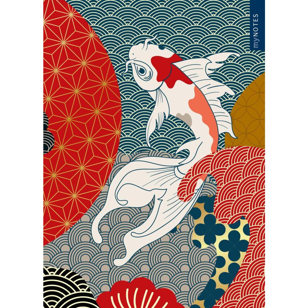 Notizbuch mit Ringbindung - Japan Unser punktkariertes Blankbook im Skizzenbuch-Stil im japanischen Look hat nur auf dich gewartet. Auf deine fabelhaften Ideen und Glücksmomente, künstlerischen Abenteuer und Geschichten.¿ Nicht zu groß und nicht zu klein: Es hat die richtige Größe, um dich überallhin zu begleiten (zwischen DIN A5 und DIN A4). Nutze es für deine Erinnerungen: als Reisetagebuch, Album oder schreibe deine besten Rezepte auf. Oder hast du große Pläne? Fang gleich an und halte deine Träume und Ziele fest!¿ Unser Ringbuch bezaubert durch seine typische Japan-Optik in warmen Farben und weckt die Lust, mit dem Schreiben zu beginnen. Praktischer Allrounder zum Festhalten deiner Lieblingsdinge: Skizzen, Notizen, Ideen und Erinnerungen - unser Ringbuch bietet dir viel Platz für alles, an das du dich gern erinnerst. Dank Spirale bleibt es aufgeschlagen liegen und du kannst aus jeder Position superleicht eintragen myNotes mit Spiral-Bindung: Hardcover mit Wire-O-Bindung, Größe 17,0 x 24 cm, 192 gepunkteten Seiten. Stabiles Papier (120 g/m²) und so perfekt geeignet fürs Handlettering und Bullet-Journaling, Papier aus nachhaltigen und kontrollierten Quellen Hochwertige Gestaltung und Veredelung: Ein anmutiger Karpfen schwimmt durch ein Meer aus Mustern. Der Glücksbringer wird besonders durch das ihn umgebende schimmernde Gold zum Strahlen gebracht Bei uns findest du Schönes aus Papier: Wir lieben einzigartige Designs und haben ein Auge für Details. Unsere Schreibwaren zum Organisieren, Kreativwerden und Verschenken stehen für Qualität, hochwertige Ausstattung und Formatvielfalt myNOTES - Notizbuchliebe und Papierträume Schöne Dinge und Geschenke für dich, deine Lieblingsmenschen und alle, die genauso papierverliebt sind wie wir. Entdecke weitere Produkte unserer Papeterie-Linie "Sehnsucht nach Japan", die das Land durch elegante Muster, Symbole und Farben widerspiegelt.