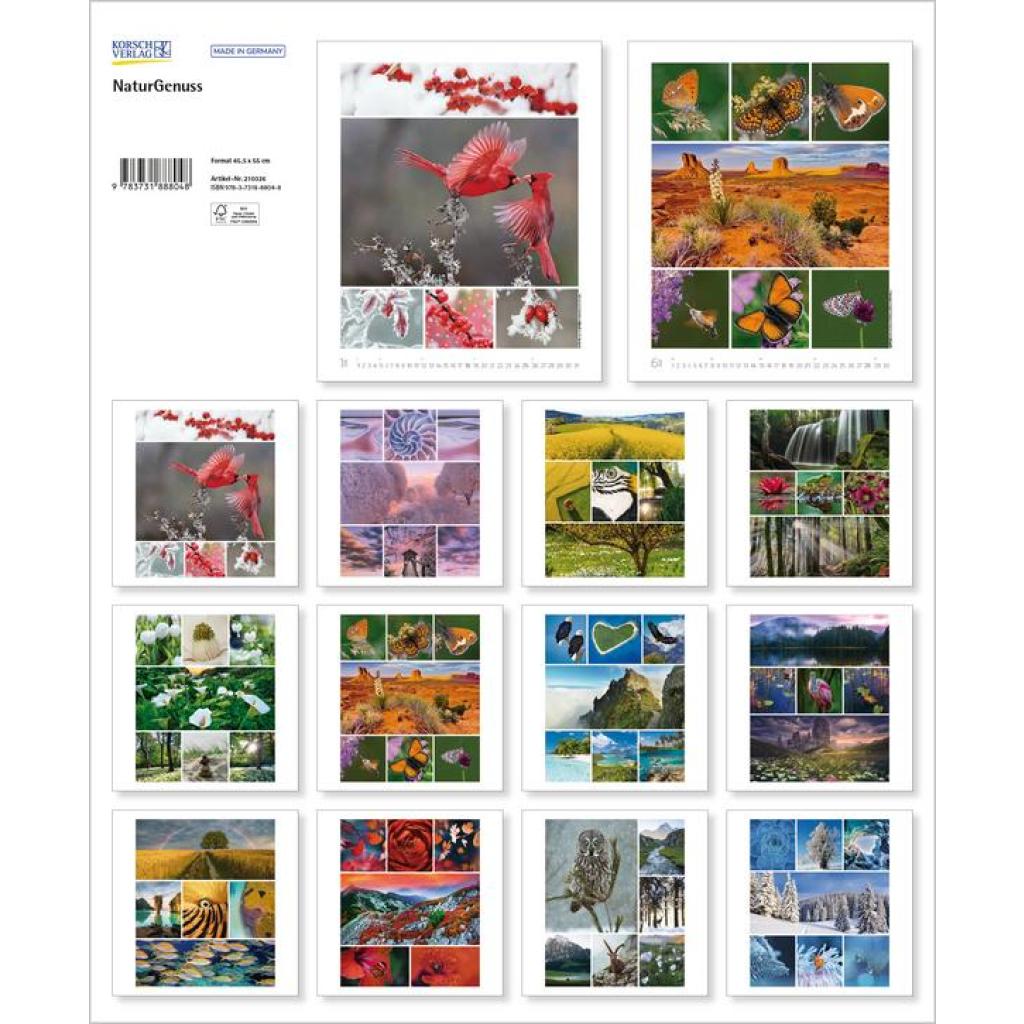 Naturgenuss pur bietet dieser großformatige Kalender mit zwölf kunstvollen Collagen aus jahreszeitlichen Naturphänomenen. Zarte Samenstände, Blüten, Landschaftsformationen und Tierportraits ergänzen sich zu einem Wandschmuck der Superlative,der alle, die die Natur lieben, jeden Monat aufs Neue begeistern wird. Hervorragende Druckqualität bis ins Detail Neutrales Kalendarium für alle Länder FSC zertifiziertes Papier aus verantwortungsvollen Quellen Korsch Wandkalender Entdecke die vielseitigen Einsatzmöglichkeiten für unseren Kalender, sei es im Büro, in der Küche, im Wohn- oder Schlafzimmer. Dieser Wandkalender ist nicht nur ein optisches Highlight, sondern auch ein praktischer Begleiter durch das Jahr. Er begeistert mit wechselnden, einzigartigen Motiven für jede Jahreszeit. Korsch Kalender zeichnen sich durch eine herausragende Druckqualität, eine stabile Spiralbindung und hochwertiges Papier aus. Dies gewährleistet ein müheloses Umblättern der Seiten sowie eine stilvolle Dekoration deiner Räume. Wähle aus verschiedenen Formaten unserer Poster-Kalender aus, um das passende Deko-Element für deine Wand zu finden!