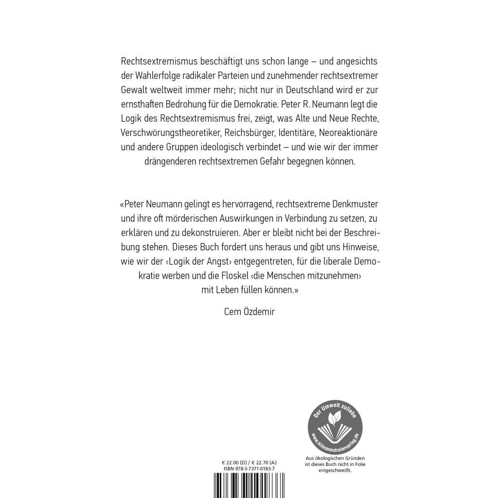 | Keyword: | AfD; Angst; Chauvinismus; Fremdenfeindlichkeit; Front National; Großer Austausch; Hass; Identitäre Bewegung; Ideologie; Nationalismus; Nationalsozialismus; Neonazis; Neue Rechte; Populismus; Rechtsextremismus; Rechtsradikalismus; Reichsbürger; Ressentiment; Sachbuch Politik; Verschwörungstheorien; Xenophobie; deutsche Zeitgeschichte; völkische Bewegung |