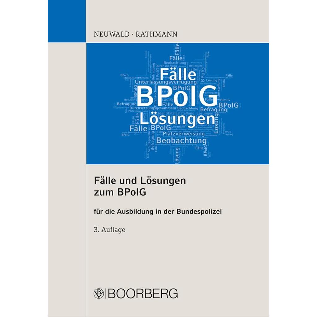 | Keyword: | BPolG; Befragung; Beobachtung; Bundespolizeigesetz; Durchsetzungsgewahrsam; Durchsuchung; Fälle; Identitätsfeststellung; Lehrbuch; Musterlösungen; Platzverweisung; Schutzgewahrsam; Sicherstellung; Unterbindungsgewahrsam; Unterlassungsverfügung |