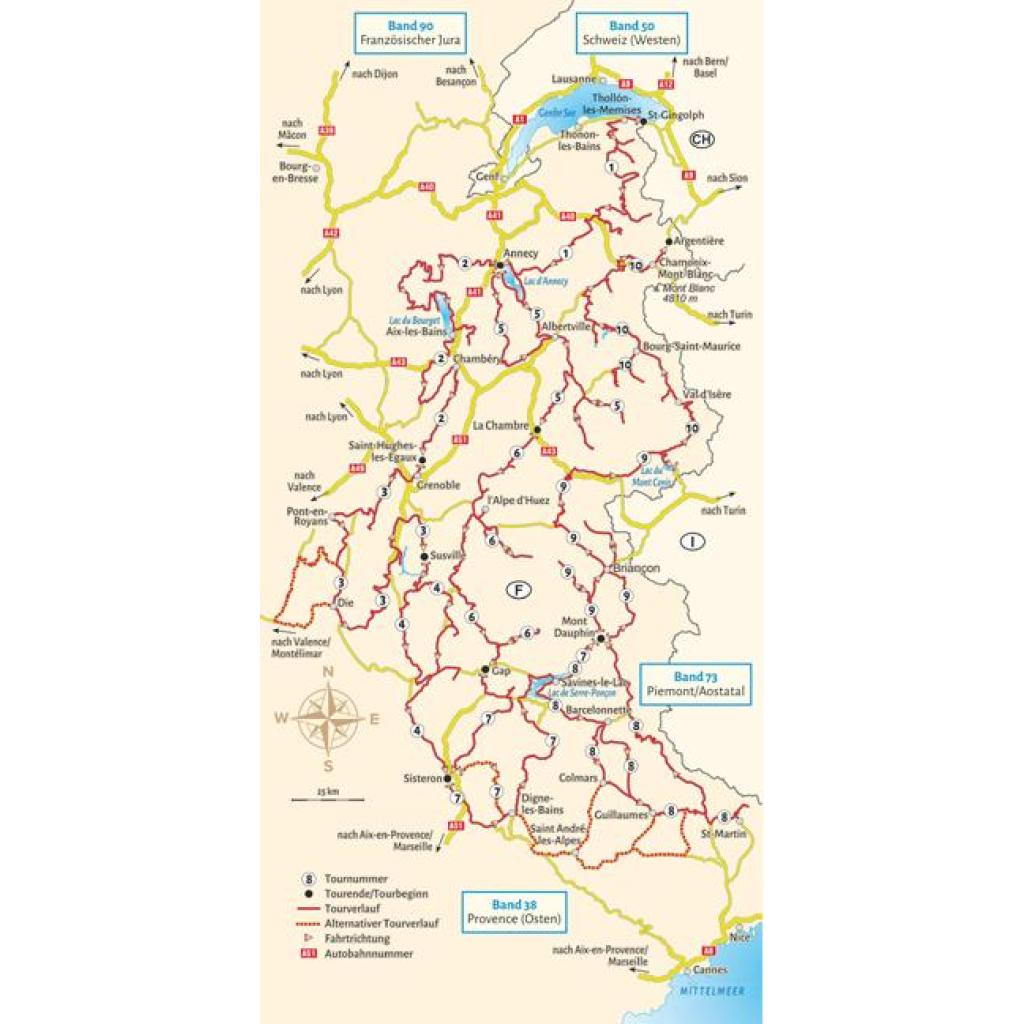 TOURENKARTEN NATUR ERLEBEN; WANDERN KULTURSCHÄTZE, STÄDTE BADEN Die Anleitung für einen Erlebnisurlaub Kurvenreich geht es die Pässe hinauf und hinunter. Fantastische Fernsichten, frische Bergluft, eine formidable regionale Küche, Höhlen, Schluchten, Bergseen, Gletscher und Bergbahnen bieten eine bunte, erlebnisreiche Mixtur, die Sie auf den fast 4000 Kilometer langen Touren durch diese einmalige Gebirgslandschaft begeistern wird. ¿ Wertvolle Insidertipps: Stellplätze, Sehenswürdigkeiten, Wanderungen durch tiefe Schluchten, Radtouren, Badeplätze. ¿ Traumhafte Alpenpanoramen: Grandiose Blicke auf Gletscher und Seen in einer überraschend vielfältigen Bergwelt. ¿ Über 200 Übernachtungs- und Campingplätze mit genauen Anfahrts beschreibungen und präzisen GPS-Koordinaten. Gut zu wissen: Der WOMO-Online-Service bietet die GPS-Daten aller Stell- und Campingplätze dieses Reiseführers auch im WOMO-Shop zum kostenlosen Download an!