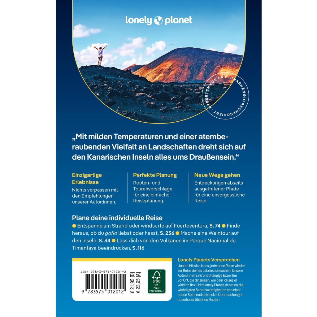 Mach die Welt zu deinem Abenteuer und entdecke mit dem Lonely Planet Reiseführer die Kanarischen Inseln Mit dem Lonely Planet Kanarische Inseln auf eigene Faust unterwegs auf der spanischen Inselgruppe vor der Westküste Afrikas. Etliche Monate Recherche stecken im Kultreiseführer für Individualreisende. Die Autoren geben sachkundige Hintergrundinfos, liefern Tipps und Infos für die Planung der Reise, beschreiben alle interessanten Sehenswürdigkeiten und präsentieren ihre persönlichen Entdeckungen und Tipps. Erleben Sie fünf Inseln mit herrlichen Badestränden, Mond- und Dünenlandschaften, prähistorischen Stätten und unberührter Natur in insgesamt abwechslungsreichen Nationalparks. Der Lonely-Planet- Reiseführer Kanarische Inseln ist ehrlich, praktisch und liefert inspirierende Eindrücke und Erfahrungen - mit dem Lonely Planet im Gepäck sind Sie für einen Aktiv- oder Erholungsurlaub bei perfekten Temperaturen bestens gerüstet! - Reiseplanung: Erkunde die tollsten Ecken deines Reiseziels und plane deine perfekte Reise mithilfe unserer Reiserouten und detaillierten Karten. - Reiseziele: Entdecke einzigartige Erlebnisse, Tipps unserer Autor:innen und Expert:innen, Hintergründe und Empfehlungen. - Praktisches: Die wichtigsten Informationen für deine Reise im Überblick. Kurz und übersichtlich zusammengefasst. - Storybook: Tauche mit unseren Reportagen tief in den Alltag ein und erfahre mehr über die Seele deines Reiseziels. - Der heraustrennbare Faltplan passt praktisch in jede Tasche.