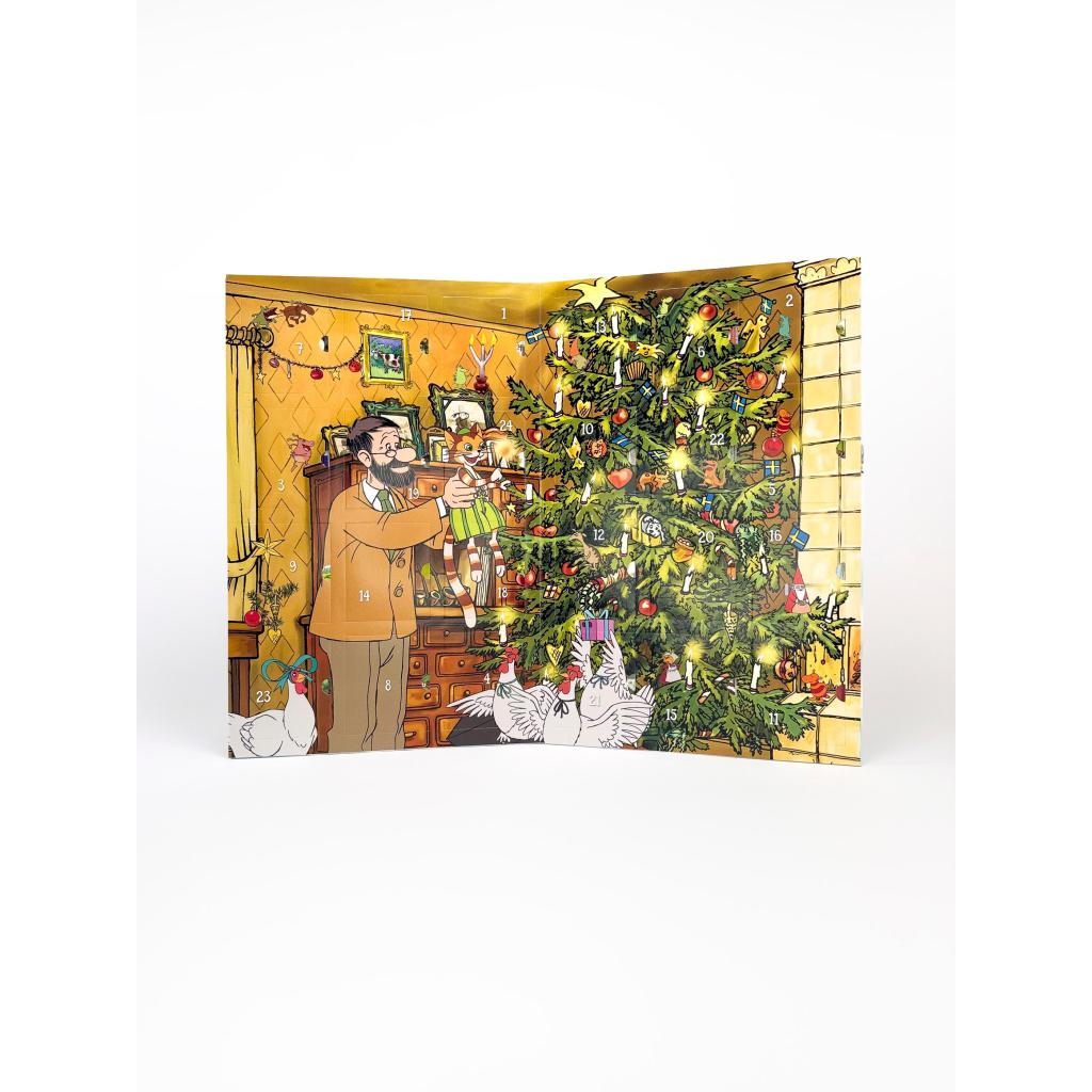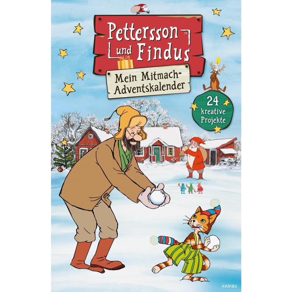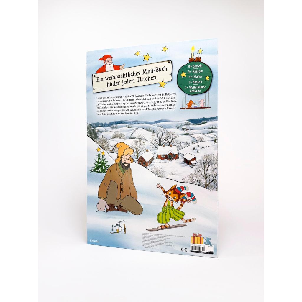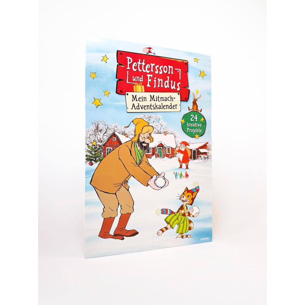 24 Mini-Bücher hinter aufklappbaren Türchen mit Bastelanleitungen, Rätseln, Ausmalbildern und Findus' Lieblingsrezepten