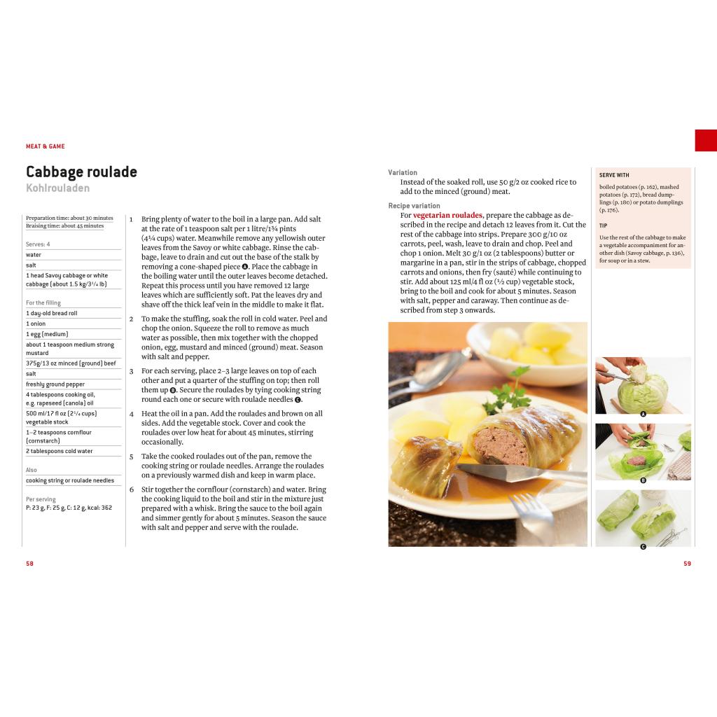 international erhältliche Zutaten Traditionelle bewährte Rezepte aus dem Schulkochbuch praktischen Umrechnungstabellen , damit Maßangaben zu Cups, Pints oder Unzen kein Hindernis darstellen Die 300 besten und beliebtesten Rezepte aus der deutschen Küche in einem Buch in englischer Sprache - mit traditionelle Gerichten, die schon Großmutter kochte, sowie Adaptionen von internationalen Klassikern aus dem deutschsprachigen Ausland. Hier finden sich Gerichte aus allen Regionen Deutschlands und für jede Gelegenheit: von Pea soup with sausage über German pot roast, Frankfurt green sauce, Sauerkraut, Bread dumplings und Red fruit jelly bis hin zu Baked apples: Dank der vielen Tipps, Schritt-für-Schritt-Anleitungen und Bilder gelingen diese Gerichte wirklich jedem. Beruhend auf den Rezepten des beliebten Schulkochbuchs, dem Kochbuch für's Leben, ist "German Cooking" ein ideales Souvenir für Touristen, ein praktisches Gastgeschenk für Austauschschüler und Erasmusstudenten und ein Must-have für internationale Fans der deutschen Küche.