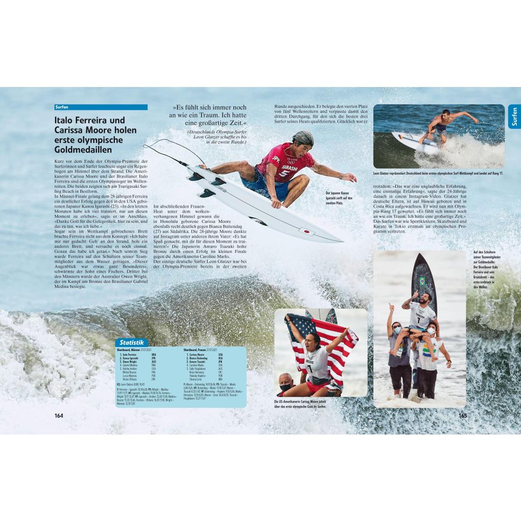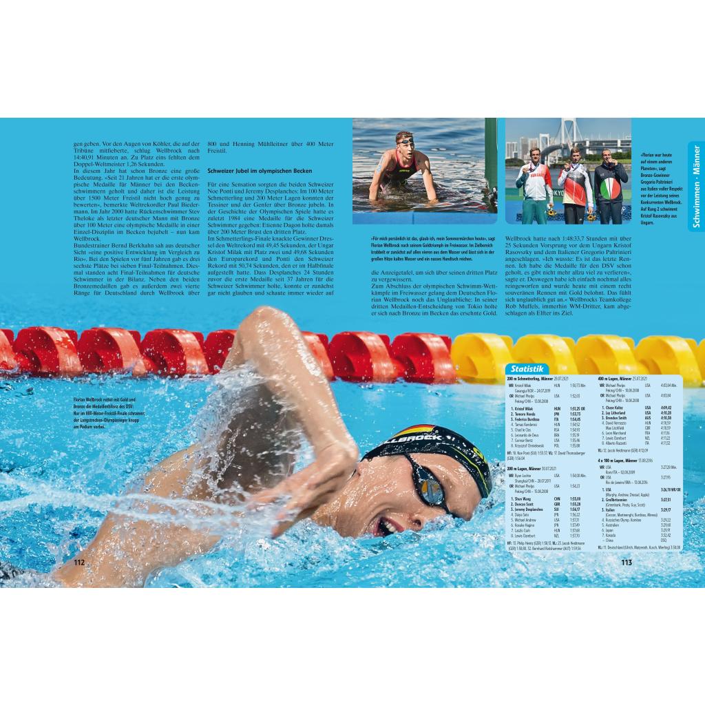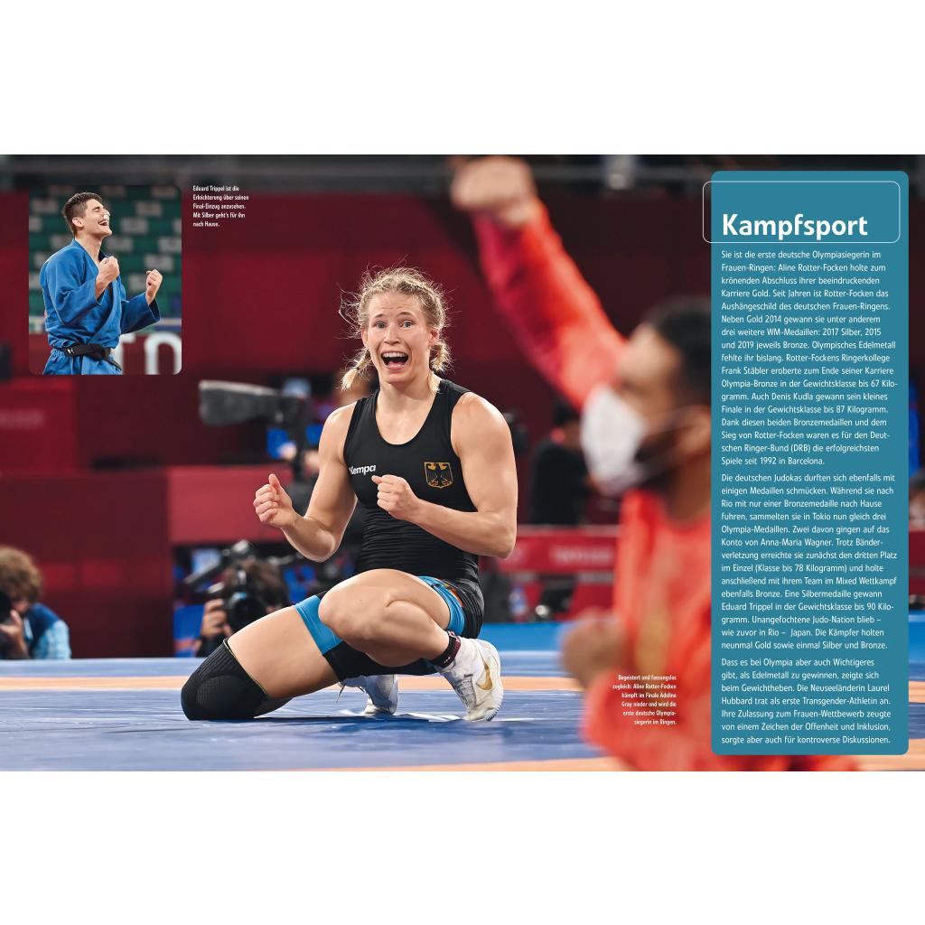 Olympische Träume in Tokio Die Olympischem Sommerspiele Tokio 2021 sind besondere Spiele: Noch nie fand eine Olympiade während einer Pandemie statt. Doch die besondere Situation tut der Faszination der Sommerspiele keinen Abbruch! 11.100 Athleten aus 206 Nationen kämpfen bei Olympia Tokio um olympisches Gold. Erleben Sie mit dieser packenden Dokumentation den Sportsgeist, die Emotionen und großen Wettkampfmomente noch einmal nach! Über 350 Fotos und umfangreiche Statistiken zu den Wettbewerben aller Olympischen Spiele Sportarten, inklusive der neuen Sportarten Baseball, Karate, Skateboard, Sportklettern, BMX Freestyle, Streetball und Surfen Sortiert nach Sportarten: Alle wichtigen Ergebnisse und Erlebnisse einer Sportart auf einen Blick Statistiken zu den Platzierungen aller Teilnehmer aus Deutschland, Österreich und der Schweiz Dokumentation der ganz besonderen olympischen Momente der Olympiade Tokio Lassen Sie sich faszinieren von den Sommerspielen! Einmal bei den Olympischen Sommerspielen dabei zu sein, ist der Lebenstraum vieler Sportler:innen. Und genau das macht die Olympischen Spiele aus: Das Miterleben der sportlichen Höchstleistungen genauso wie die überbordenden Emotionen, wenn ein Traum in Erfüllung geht. Das Blättern in diesem Bildband ist fast so gut wie live dabei zu sein!